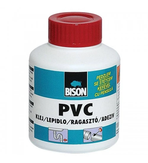 Adezivul pentru PVC cu pensulă, BISON, 100 ml nu conține THF, este lichid și resigilabil.