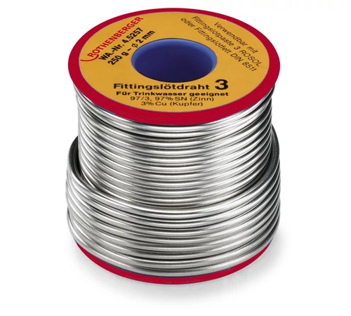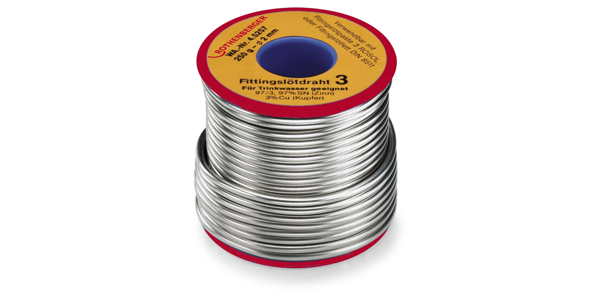 Aliaj lipire 250 gr, 3 mm, ROTHENBERGER 45255 este compus din aliaj S-Sn97Cu3 de calitate superioară, care are temperaturi de topire 230-250°C și este folosit cu pastă ROSOL 3 pentru lipituri moi în instalații de țevi.