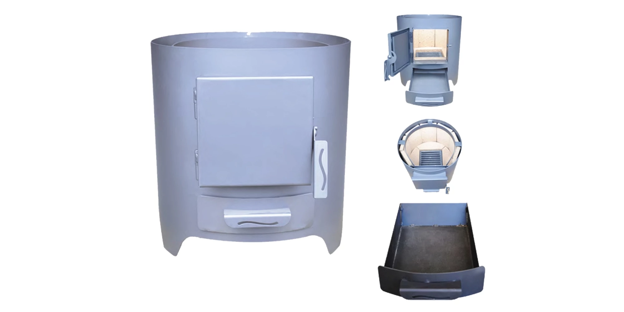 Ansamblu boiler de baie pe lemne, 120 l, din tabla de otel vopsita, plus focar, Celsius Sanitary