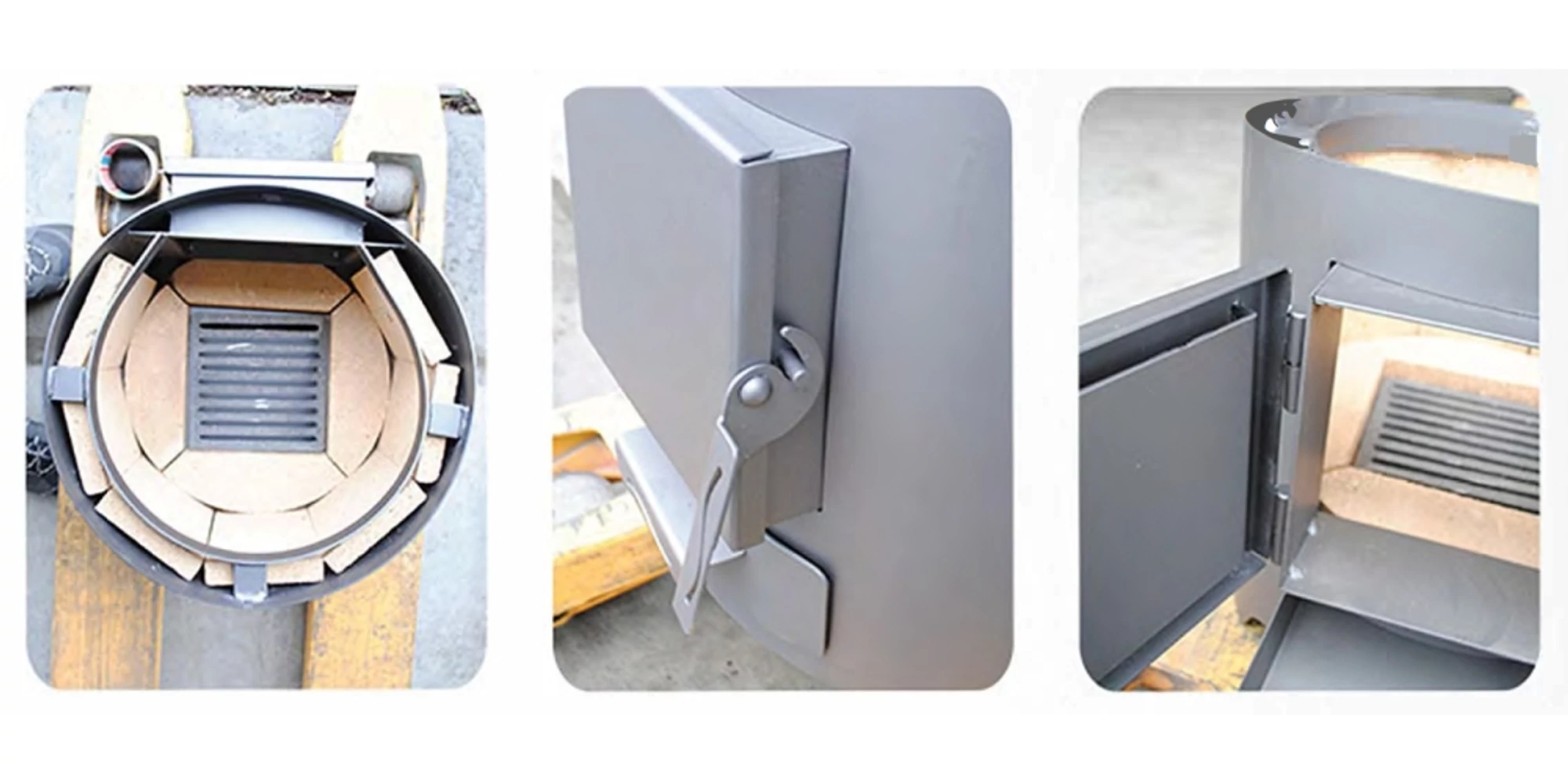 Una dintre caracteristicile esențiale ale acestui ansamblu este focarul său cu ușă și sertar cenușar din tablă de oțel. Acest focar robust și bine construit oferă o platformă solidă pentru arderea eficientă a lemnului. Cu un design ingenios, acesta permite o încărcare ușoară a combustibilului și o gestionare eficientă a procesului de ardere. Grătarul din fontă cu fante longitudinale facilitează arderea optimă a lemnului, asigurând o producție calorică constantă și uniformă.