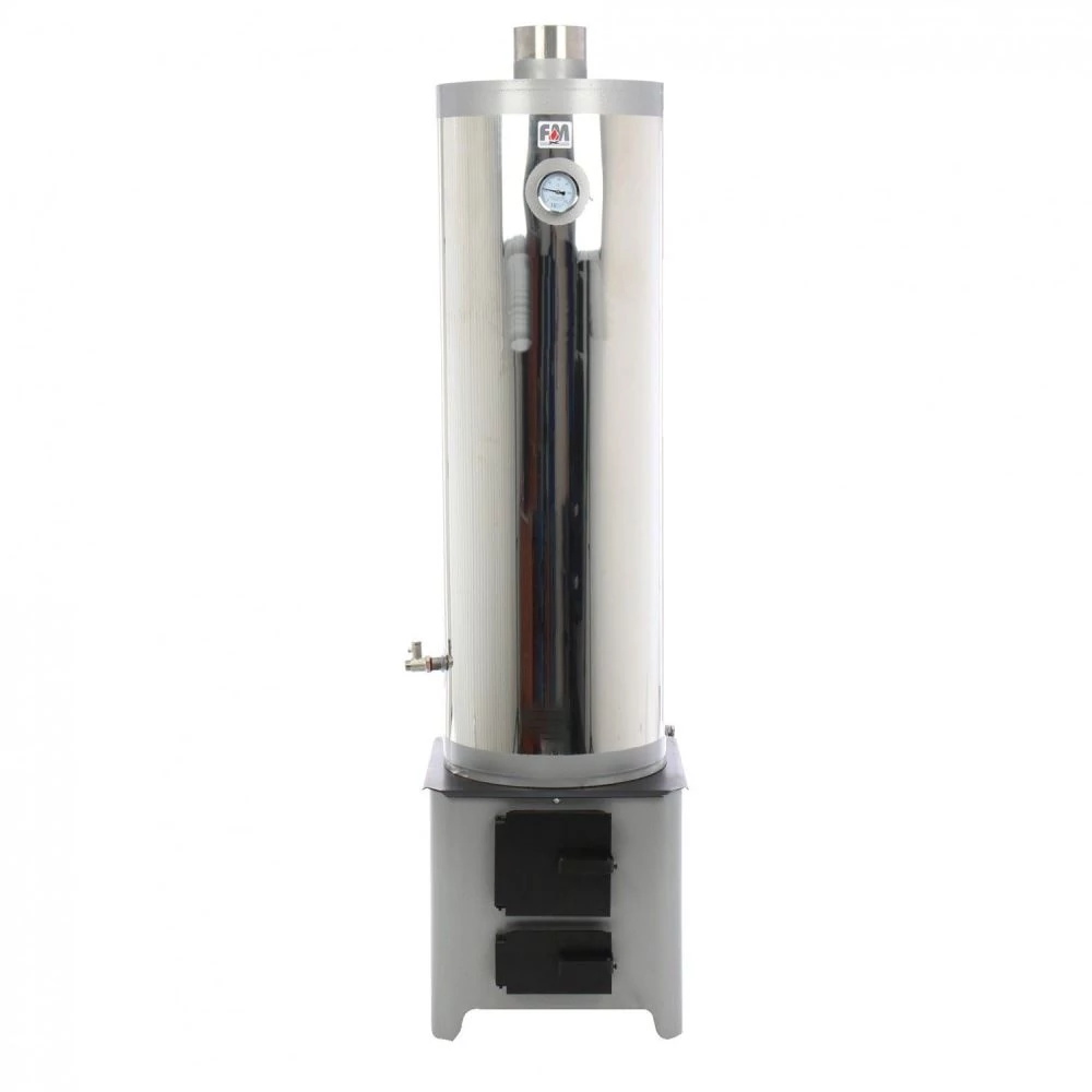Boilerul de baie pe lemne cu focar este destinată producerii apei calde menajere prin arderea unui combustibil solid în focarul boilerului de baie. Prin procedura de încălzire a apei din boiler, se generează gaze arse care prin evacuare prin țeava de evacuare, montată în interiorul boilerului, iar au un aport semnificativ la încălzirea apei.