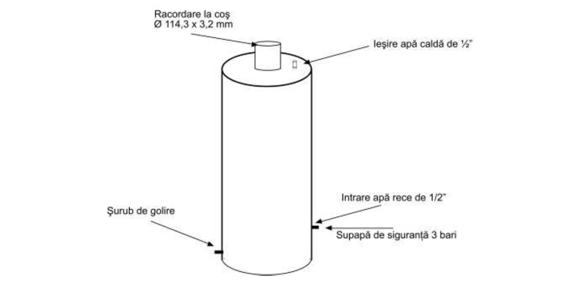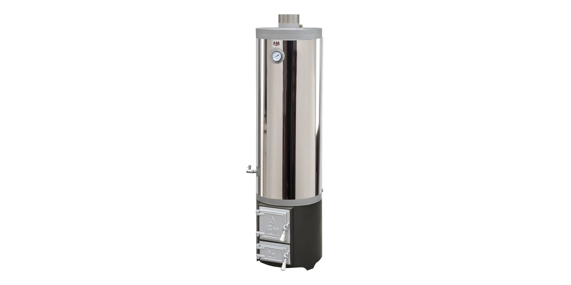 Boilerul de baie pe lemne cu focar este destinată producerii apei calde menajere prin arderea unui combustibil solid în focarul boilerului de baie. Prin procedura de încălzire a apei din boiler, se generează gaze arse care prin evacuare prin țeava de evacuare, montată în interiorul boilerului, iar au un aport semnificativ la încălzirea apei.