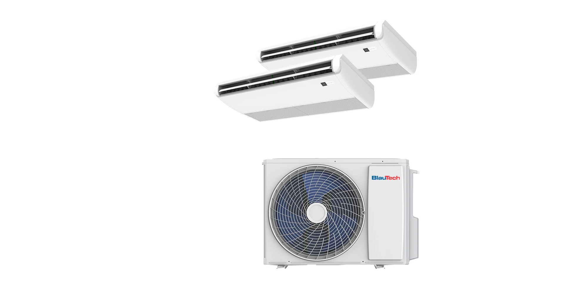 Aparat aer conditionat multisplit 27000 BTU, pentru 2 incaperi cu 1 x 12000 BTU si 1 x 18000 unitate interna cu montaj pe pardoseala sau tavan BlauTech