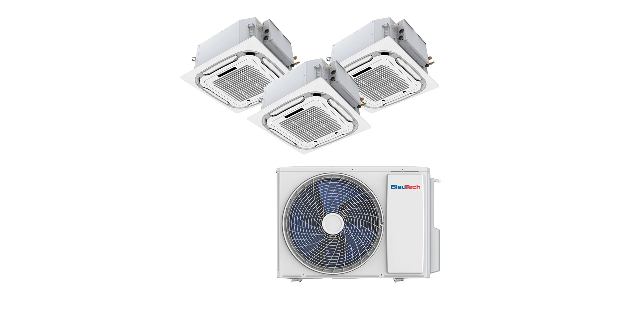 Aparat aer conditionat multisplit 36000 BTU, pentru 3 incaperi, 3 x unitate interna tip caseta 12000 BTU, BlauTech