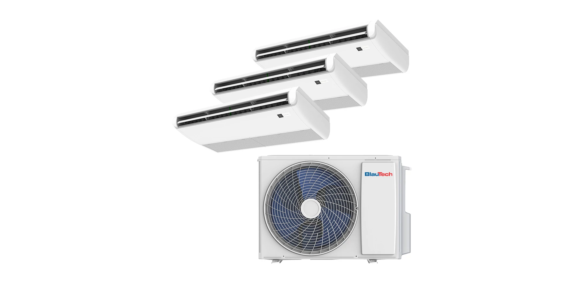 Aparat aer conditionat multisplit 42000 BTU, pentru 3 incaperi cu 3 x 18000 BTU unitate interna cu montaj pe pardoseala sau tavan BlauTech | 00720151 | 16.000,47 Lei | Aparate aer conditionat multisplit | Confort prin instalații de calitate | Melinda Instal