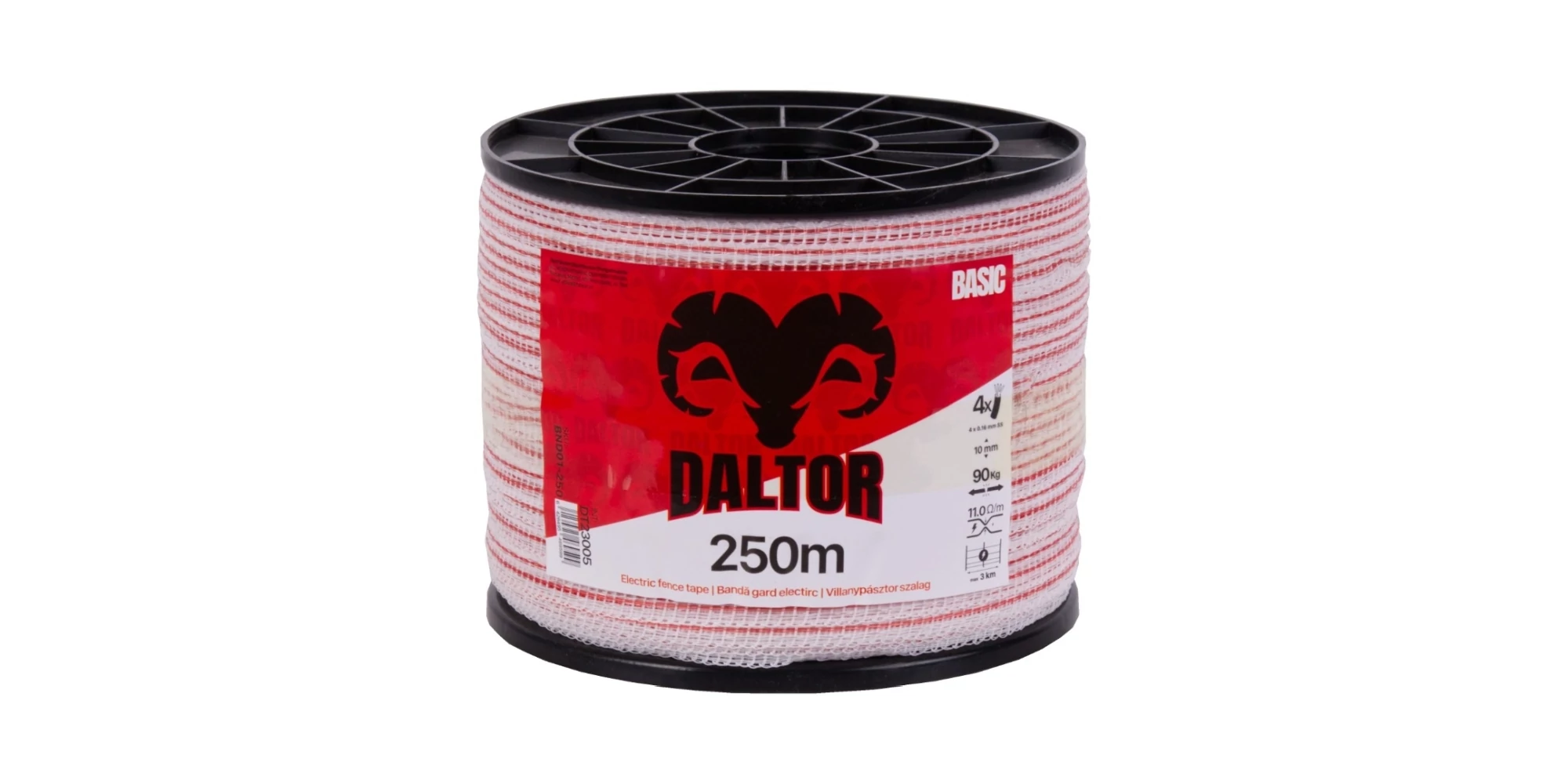 Banda gard electric DALTOR BASIC 250 m, 4 lite, rezistență 90 kg – protecția sigură și vizibilă pentru animalele tale