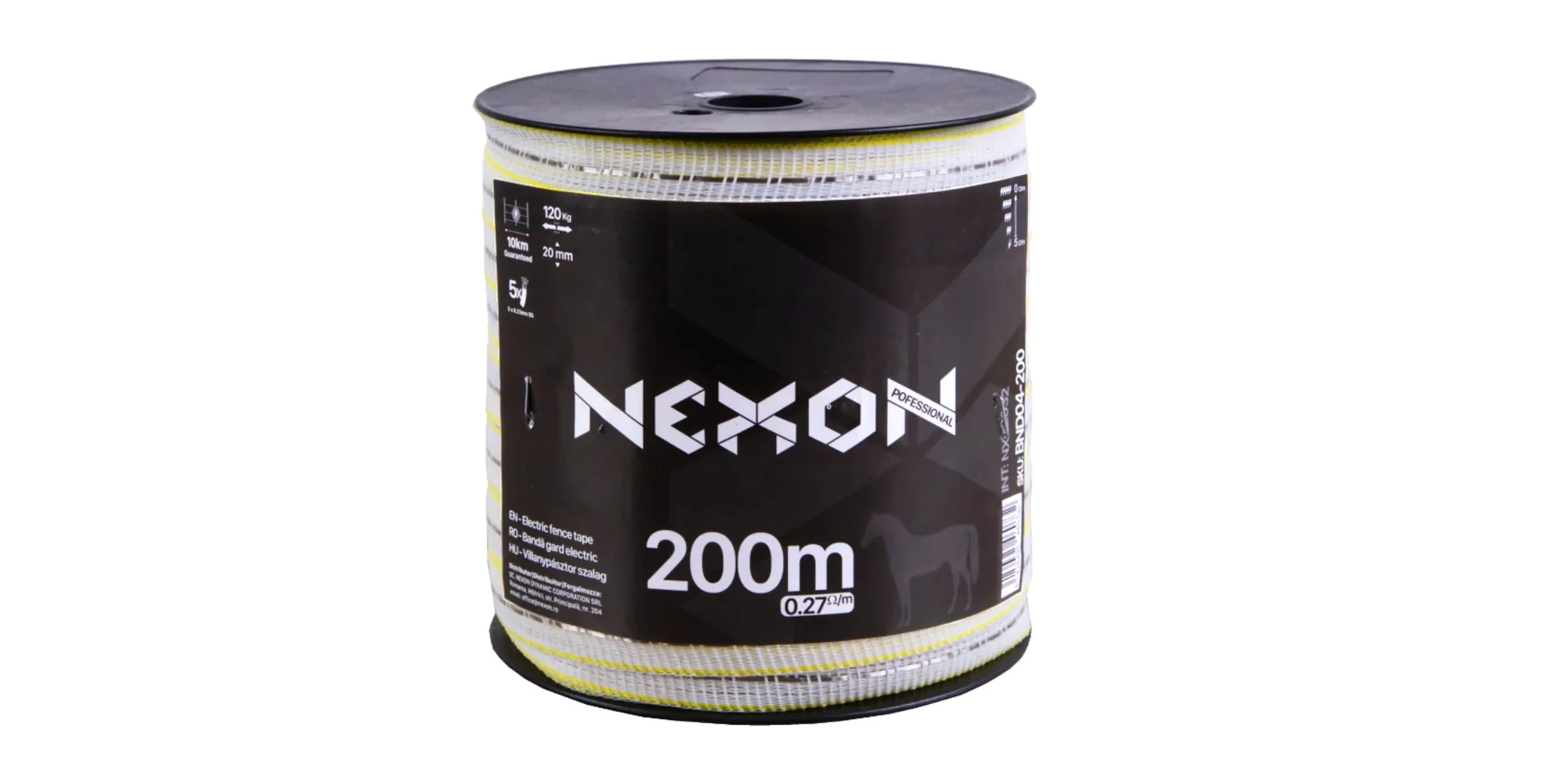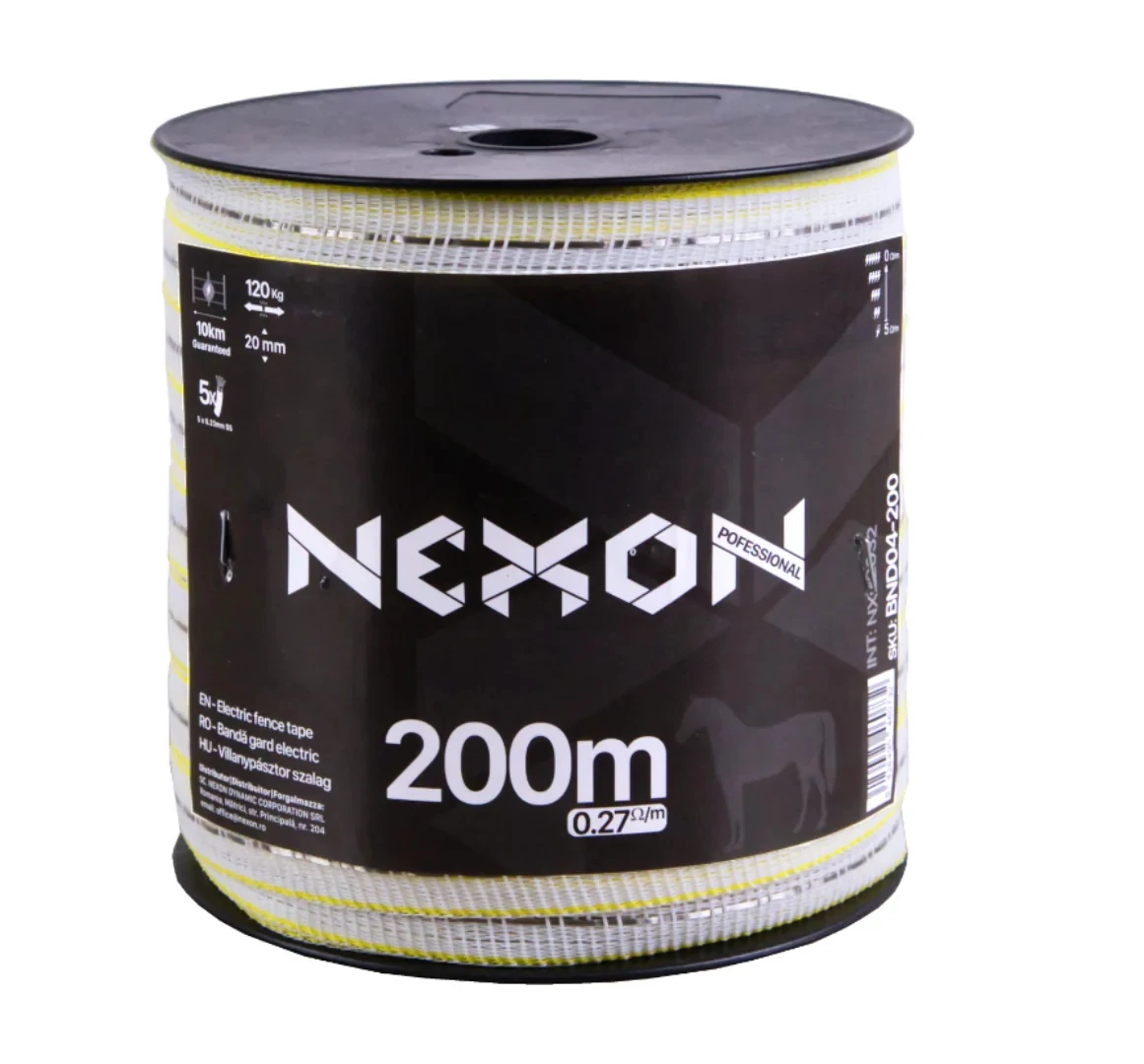 Bandă gard electric NEXON RANGER 200 m 5 lite 120 kg | 64910216 | 102,18 Lei | Conductori pentru gard electric | Confort prin instalații de calitate | Melinda InstalSpecificații tehnice