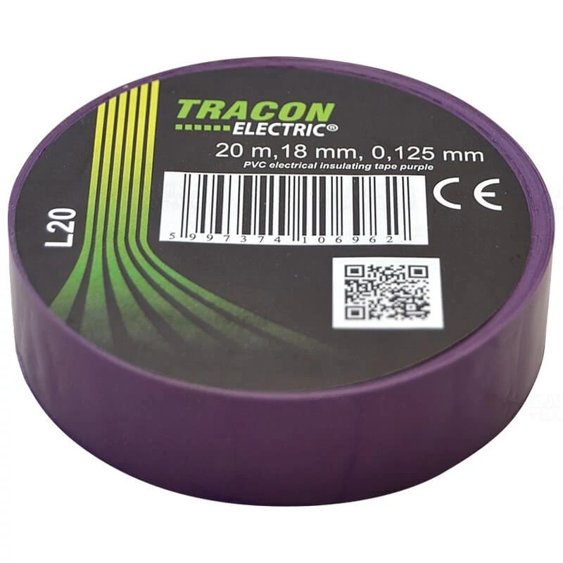 Bandă izolatoare 18 mm x 20 m, PVC, mov, Tracon