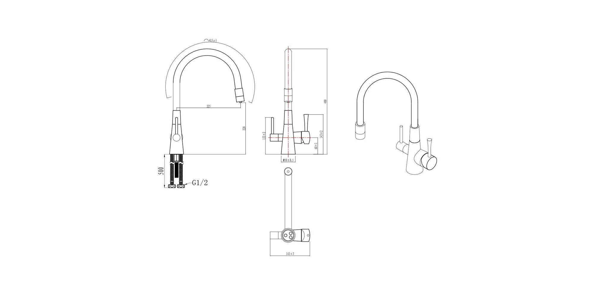 Furtunurile flexibile de 50 cm ½" îți oferă flexibilitate în instalare, iar capul cu discuri ceramice pentru apa potabilă poate roti până la 90°, asigurându-ți confort și ușurință în utilizare.