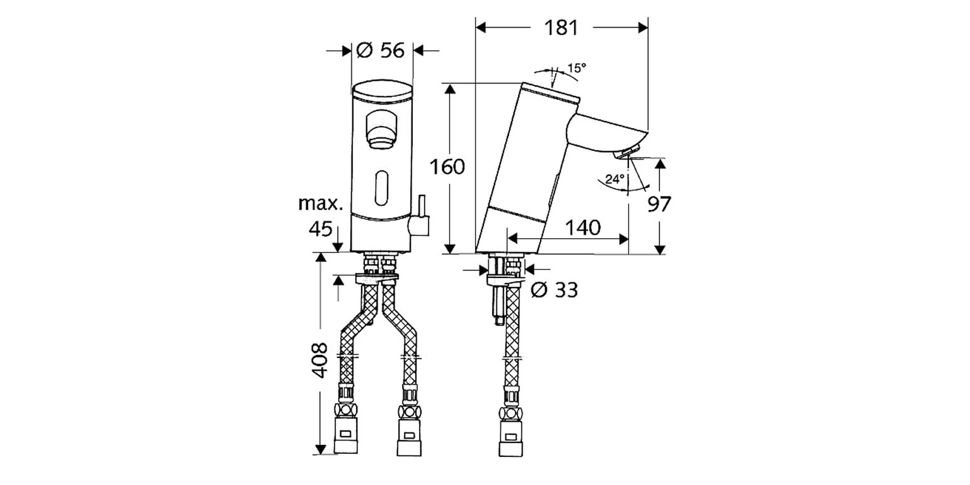 Baterie cu senzor electronic pentru lavoar, 9V, Schell, Puris E HD-M, 012260699 | 20310491 | 3.416,46 Lei | Baterie lavoar | Confort prin instalații de calitate | Melinda Instal
