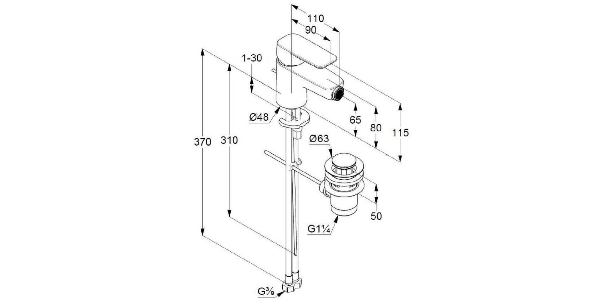 Această baterie pentru bideu are o înălțime de 115 mm și un diametru de 48 mm, adăugând o notă subtilă de eleganță băii dvs. Ea vine însoțită de racorduri flexibile pentru alimentare de tip G 3/8" și un ventil metalic de 1 1/4", oferindu-vă tot ceea ce aveți nevoie pentru o instalare completă și fără probleme.