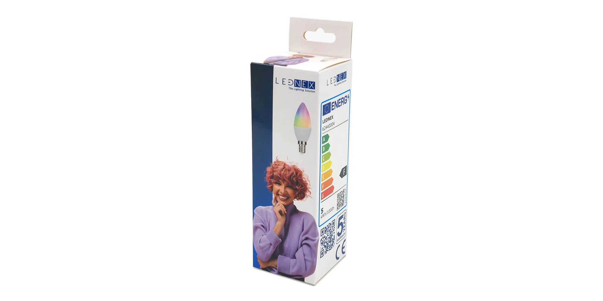 Becul LED color, SMART, tip lumanare, 5 W, E14, 470 lm, RGBW, LEDNEX este inteligent cu diferite funcții controlabile de la distanță de pe Smartphone care vă vor îmbunătăți viața de zi cu zi. Astfel de funcții sunt: pornit oprit, selectare culoare RGB, alb rece, alb cald sau sunt funcții accesibile din aplicația de smartphone alături de programare inteligentă orară/zilnică și diferite scenarii și moduri presetate. Astfel puteți controla luminile de acasă foarte ușor și in mod inteligent.