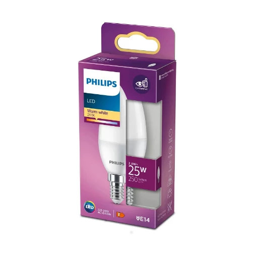 Bec LED Philips 2.8W E14 B35 250lm lumina calda PS04448 | 62410036 | 13,72 Lei | Becuri LED | Confort prin instalații de calitate | Melinda InstalSpecificații tehnice