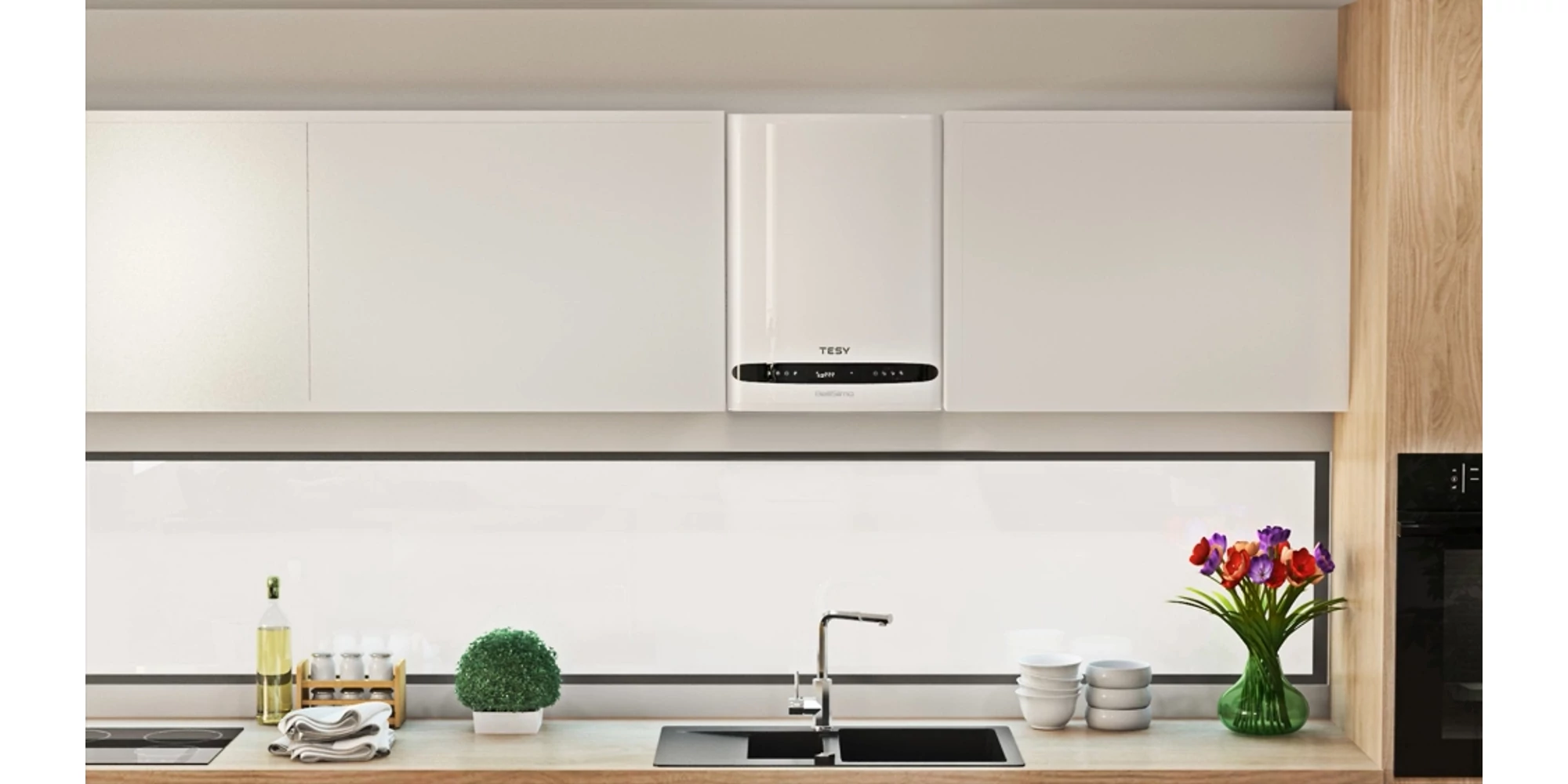 Boilerul BelliSlimo, TESY economisește spațiu -instalare ușoară în spații restrânse - bucătărie, dulapuri, șifoniere și multe altele.