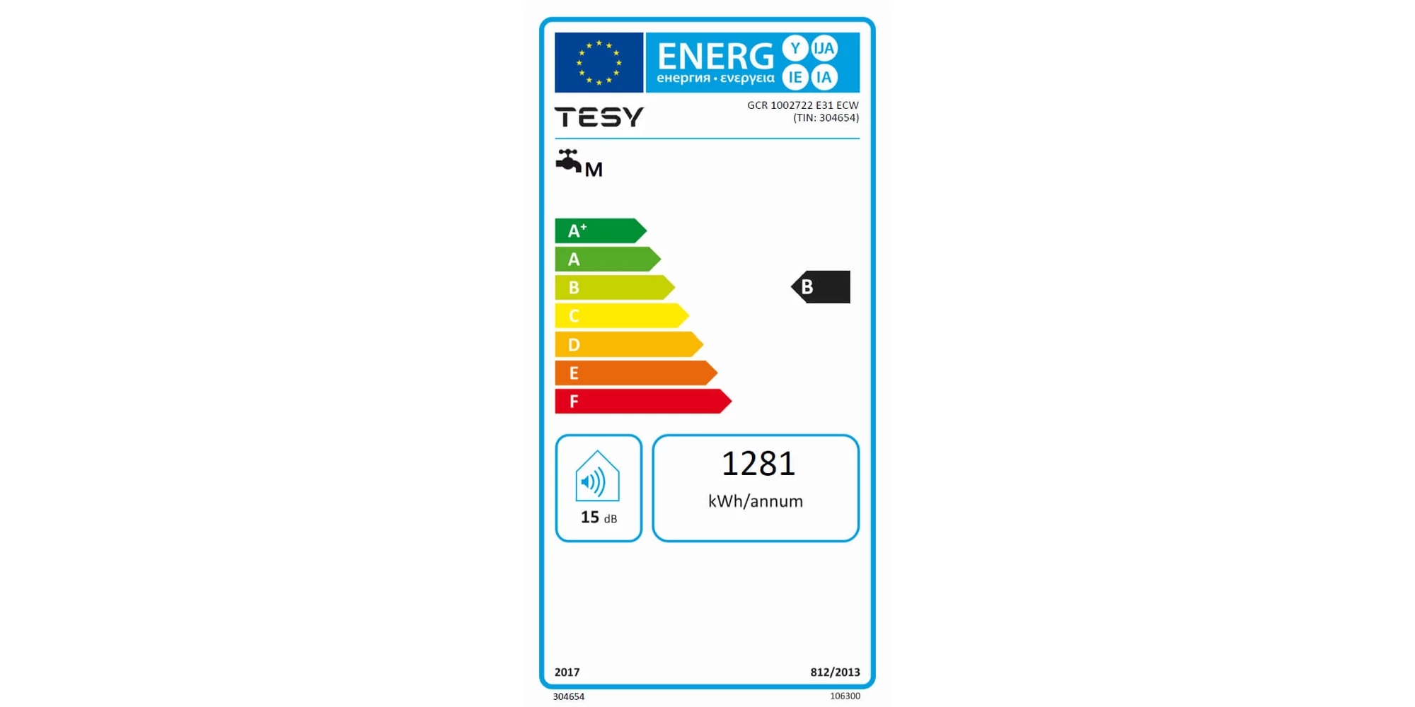 - Consum anual de electricitate AEC: 1281 kWh.