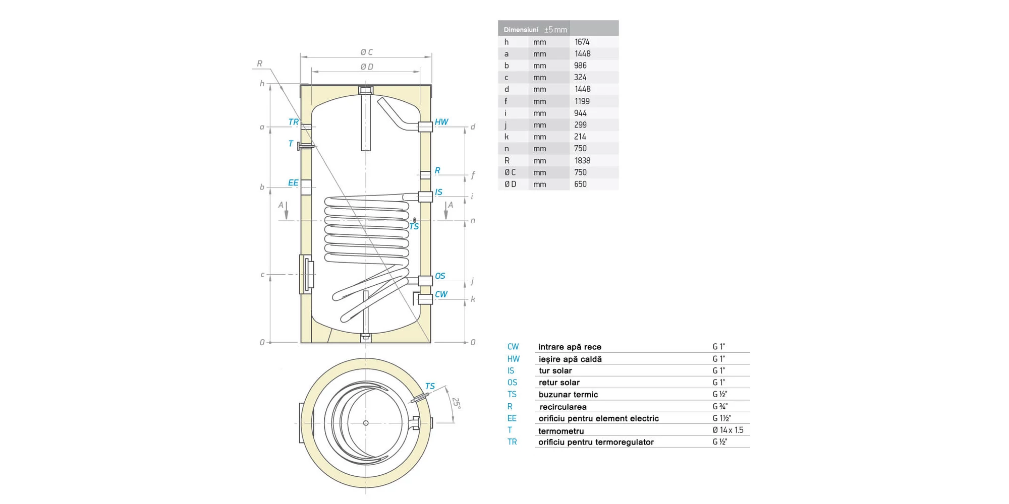 - Flanșă pentru inspecție și curățare facilă a boilerului.