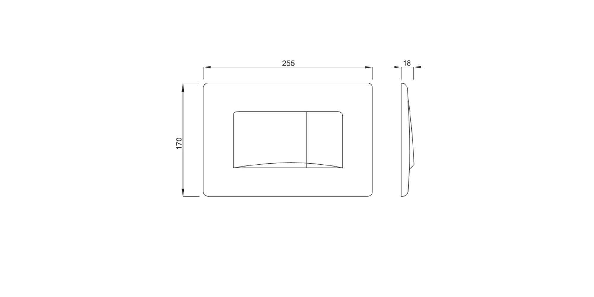 Dimensiunile butonului sunt bine echilibrate pentru un acces confortabil: lungime 255 mm, lățime 170 mm și înălțime de doar 18 mm. Profilul subțire contribuie la un aspect discret, dar suficient de mare pentru a acționa ușor butoanele, chiar și cu mâinile umede. Forma dreptunghiulară și proporțiile îți asigură o integrare armonioasă pe perete, lângă alte elemente de design.