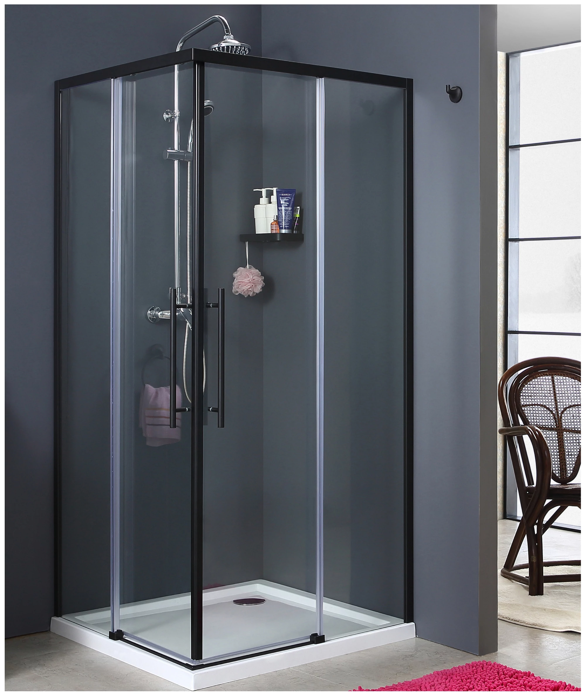 Cabina de dus patrata din sticla securizata 5 mm si aluminiu negru mat, 90 x 90 cm, GLADYS | 20440609 | 1.057,47 Lei | Cabina dus patrata | Confort prin instalații de calitate | Melinda InstalSpecificații tehnice