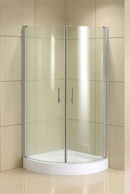Cabina de dus 90 x 90 cm semirotunda, din sticla securizata transparenta, grosimea de 5 mm si cadru aluminiu, F121, GLADYS