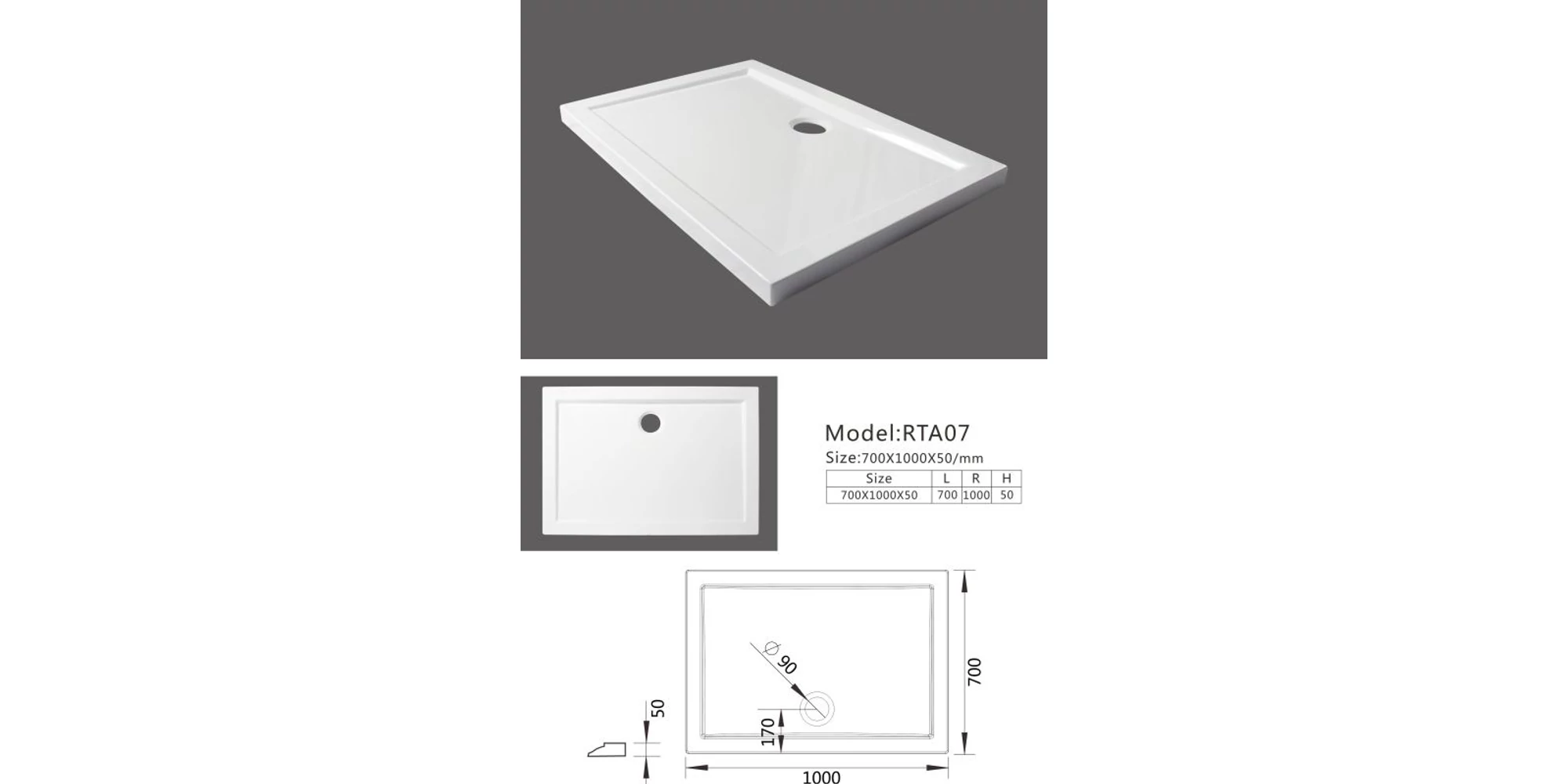 Cadita dus rectangulara din ABS si acril 70 x 100 x 5 cm, RTA07 GLADYS | 20420190 | 219,00 Lei | Cădițe de duș | Confort prin instalații de calitate | Melinda InstalSpecificații tehnice