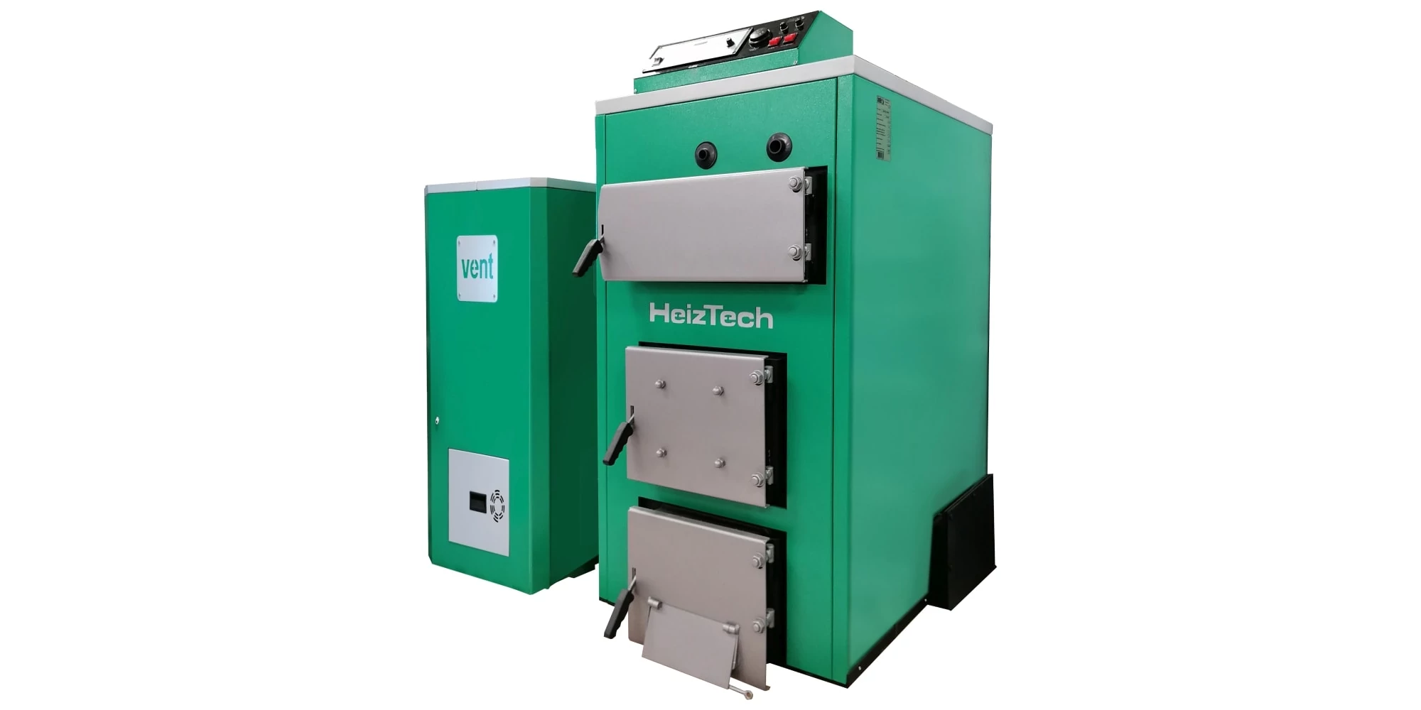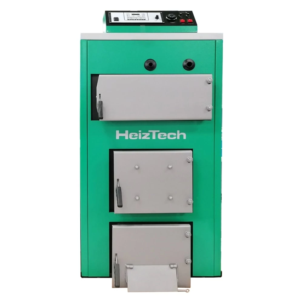 Cazanele combi pe lemne și peleți, din tablă de oțel, 150 kW, cu posibilitate de ardere peleți, Duo Pellet, SP150VENT, HeizTech sunt echipate cu un controler automat care reprezintă inima întregului sistem și controlează complet toate componentele care sunt responsabili pentru dozarea și arderea peleților – ventilatoarele, bricheta electrică, alimentatorul automat de peleți. Funcționarea neîntreruptă a cazanului este asigurată de această automatizarea care, pe baza datelor de intrare - temperatura apei, gazele de ardere, temperatura camerei, temperatura în procesul tehnologic, trimite o comandă către organele executive - ventilator de gaze de ardere, ventilator de aer primar, transportator de peleți, brichetă electrică, și menține astfel toți parametrii setați necesare pentru o combustie de calitate și cea mai bună funcționare posibilă a cazanului.
