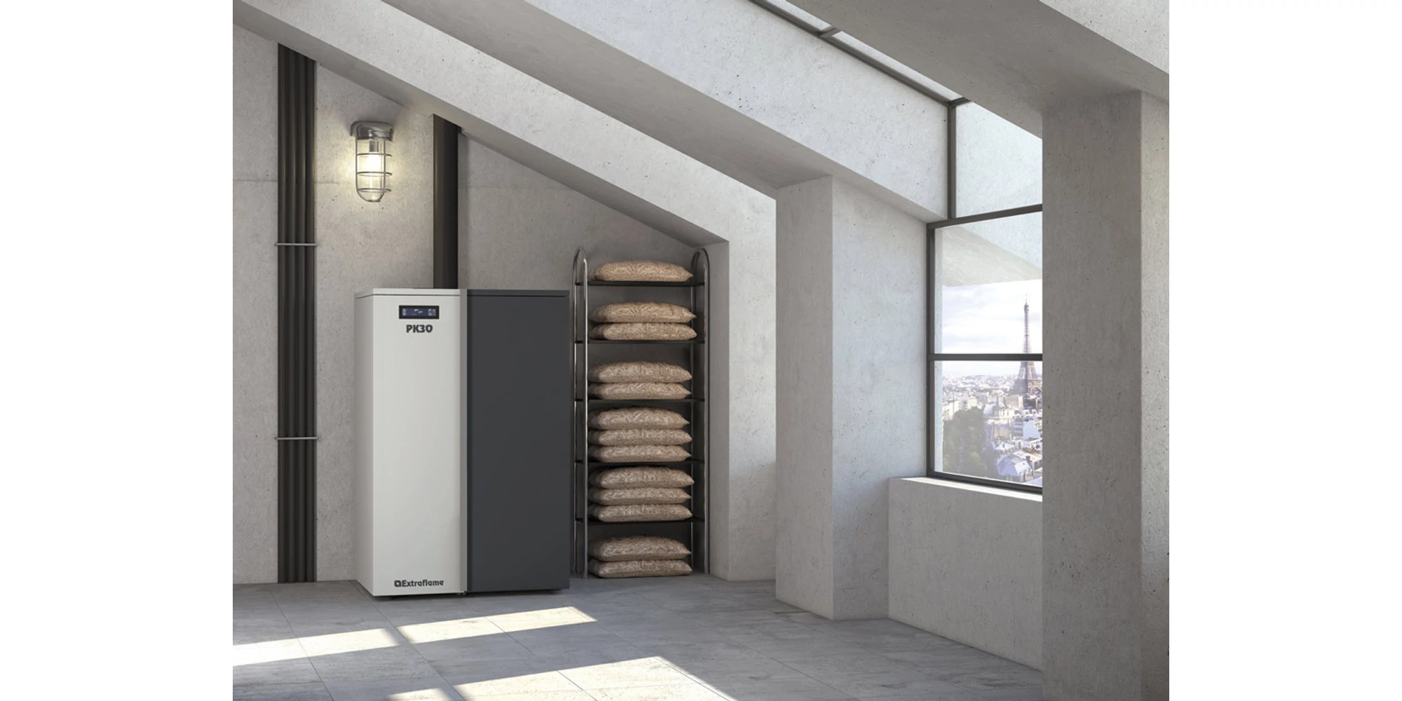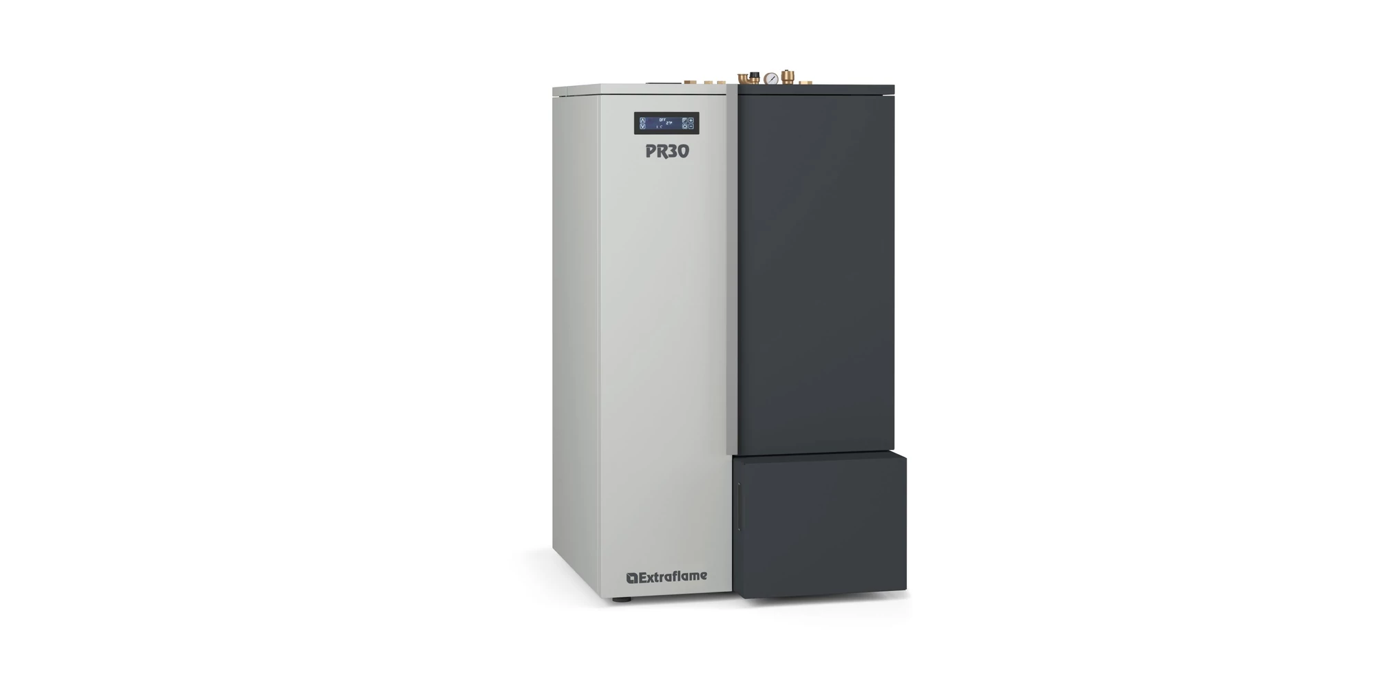 Cazan compact pe peleti 8,9 - 30 kW puterea termica nominala, pentru 860 m3, arzator cu autocuratire, extractor de cenusa, display Black Mask cu Wi-Fi integrat, PR30, La Nordica-Extraflame