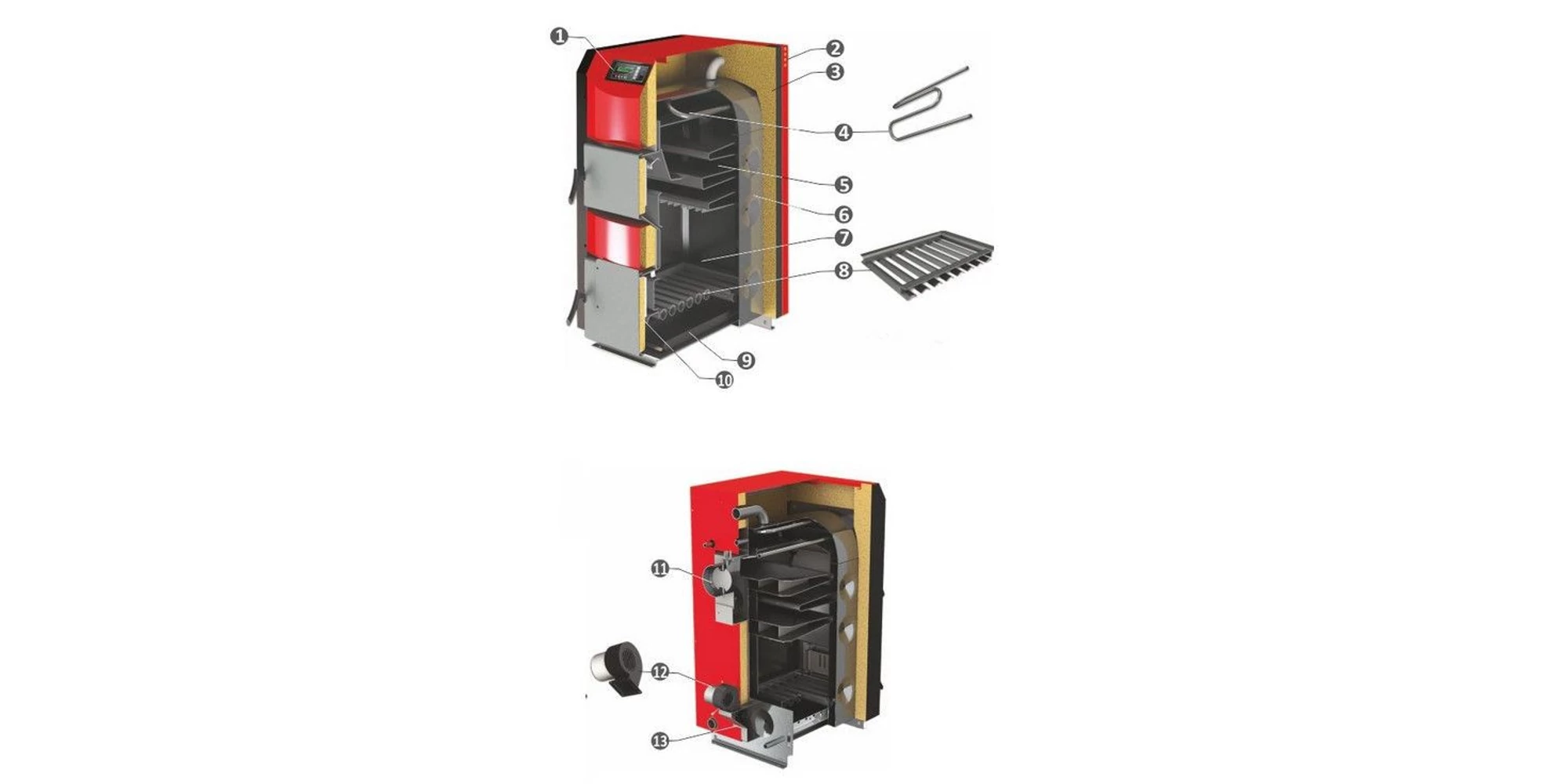 Elementele cazanului pe lemne, din tablă de oțel, 90 kW, cu ventilator, NWB PRIME 90, BURNiT: