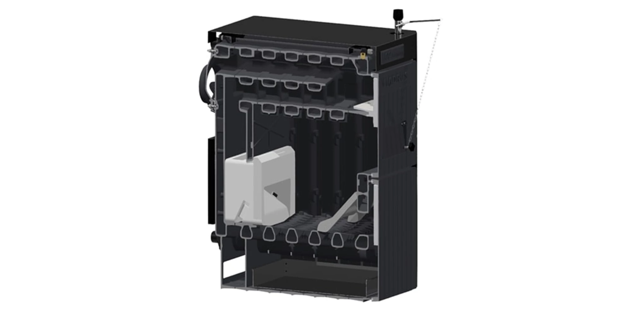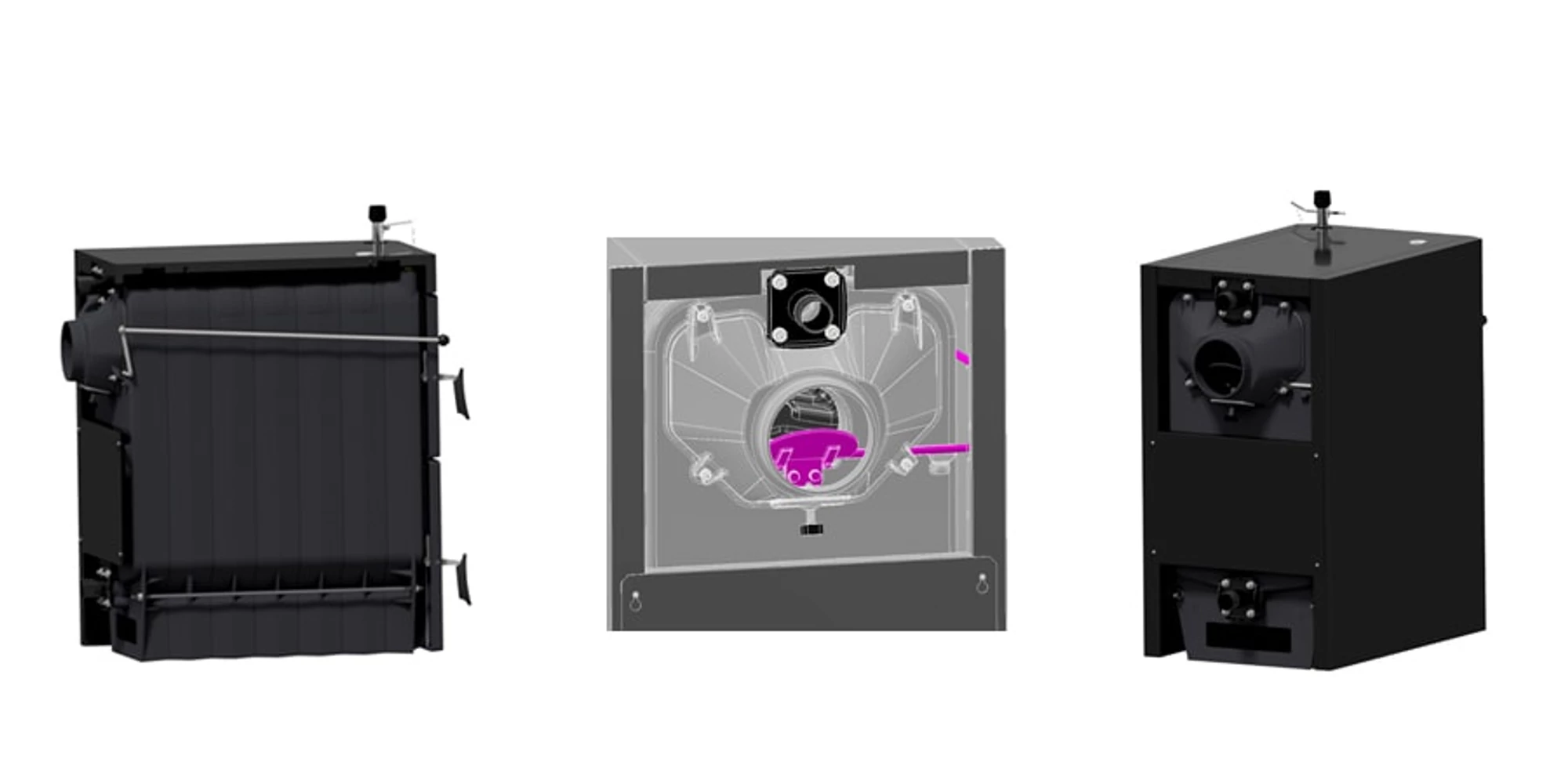 Pentru o deservire mai ușoară a cazanului acționarea clapei de aprindere este amplasată pe panoul lui frontal. Tija mecanică a clapei este ascunsă sub mantaua cazanului. Soluționarea constructivă a alonjei de fum cu clapa de aprindere robustă din fontă permite o încălzire foarte rapidă a căilor de combustie și o acționare simplă a capacului orificiului de curățare.