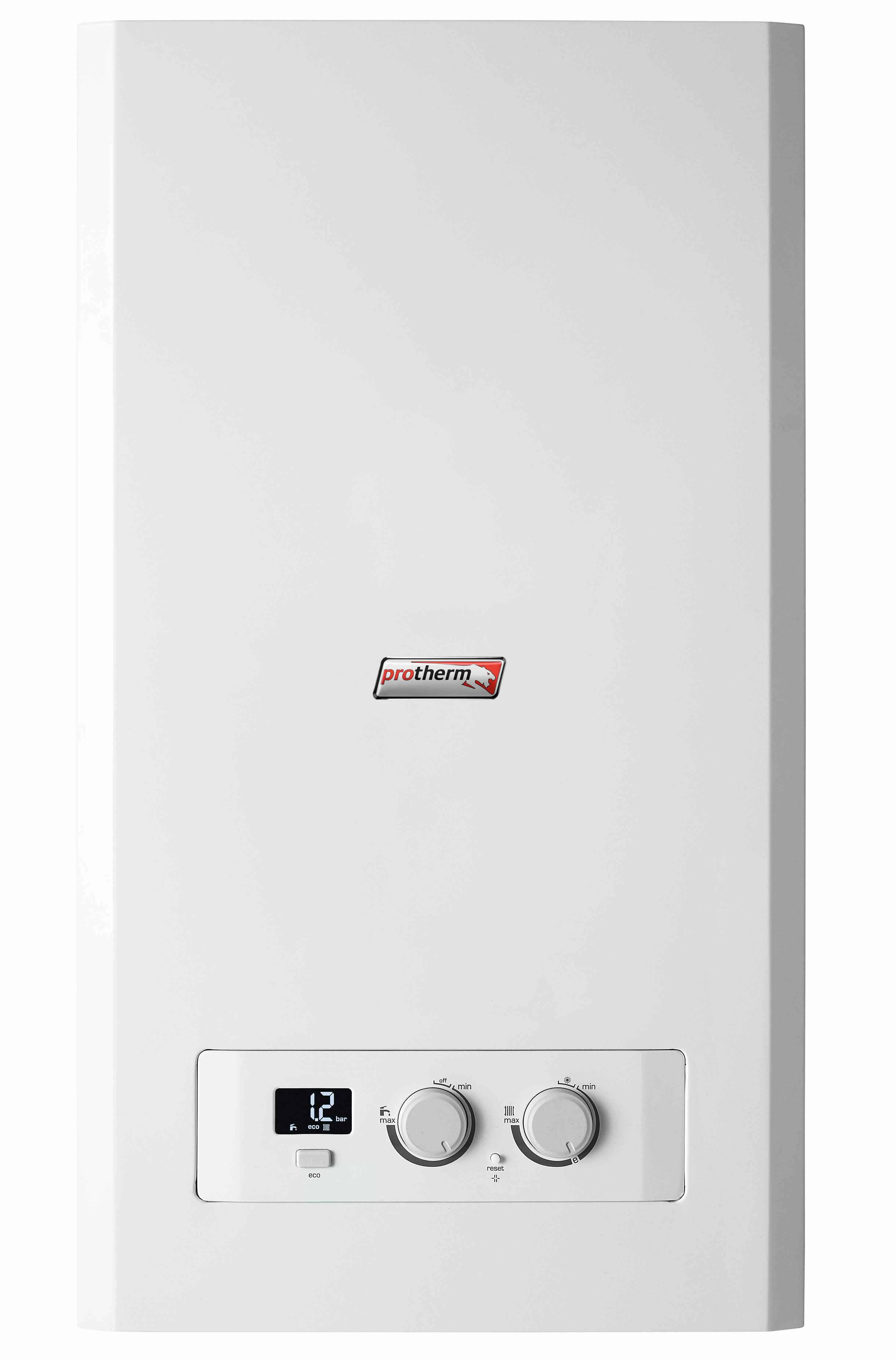 Centrala termică murală în condensați pentru încălzire și preparare apă caldă menajeră instant, Lynx, Protherm, 35 kW, cu tubulatură este destinată încălzirii spațiilor rezidențiale și furnizării de apă caldă menajeră. Utilizarea tehnologiei condensației determină scăderea consumului de combustibil cu până la 33 % față de centralele din generațiile anterioare.