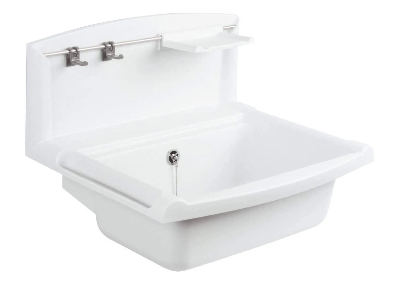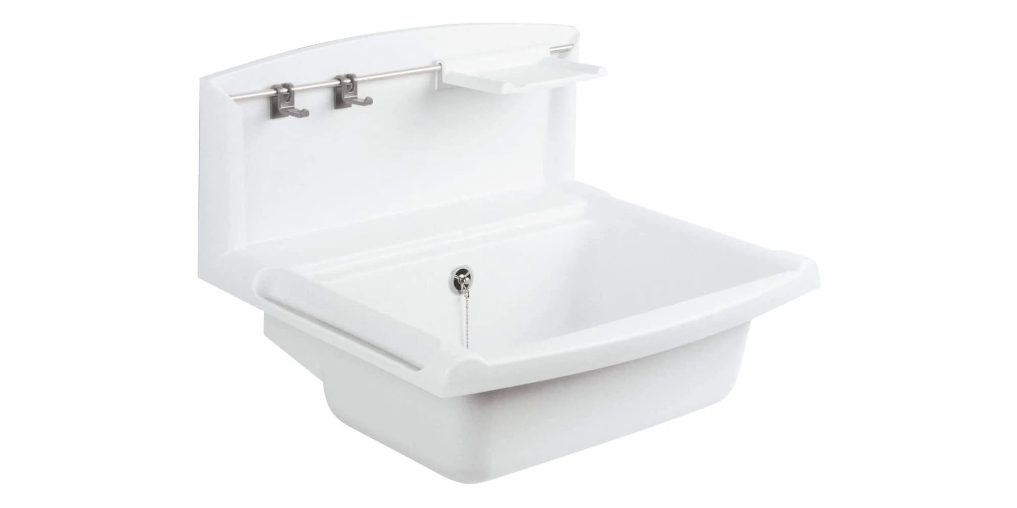 Chiuveta montabilă pe perete din material compozit, alb 60.005.01..0099 SANIT este o chiuvetă funcțională multiset, cu scurgere și spălător, fabricată din plastic rezistent la impact, temperatură și intemperii.
