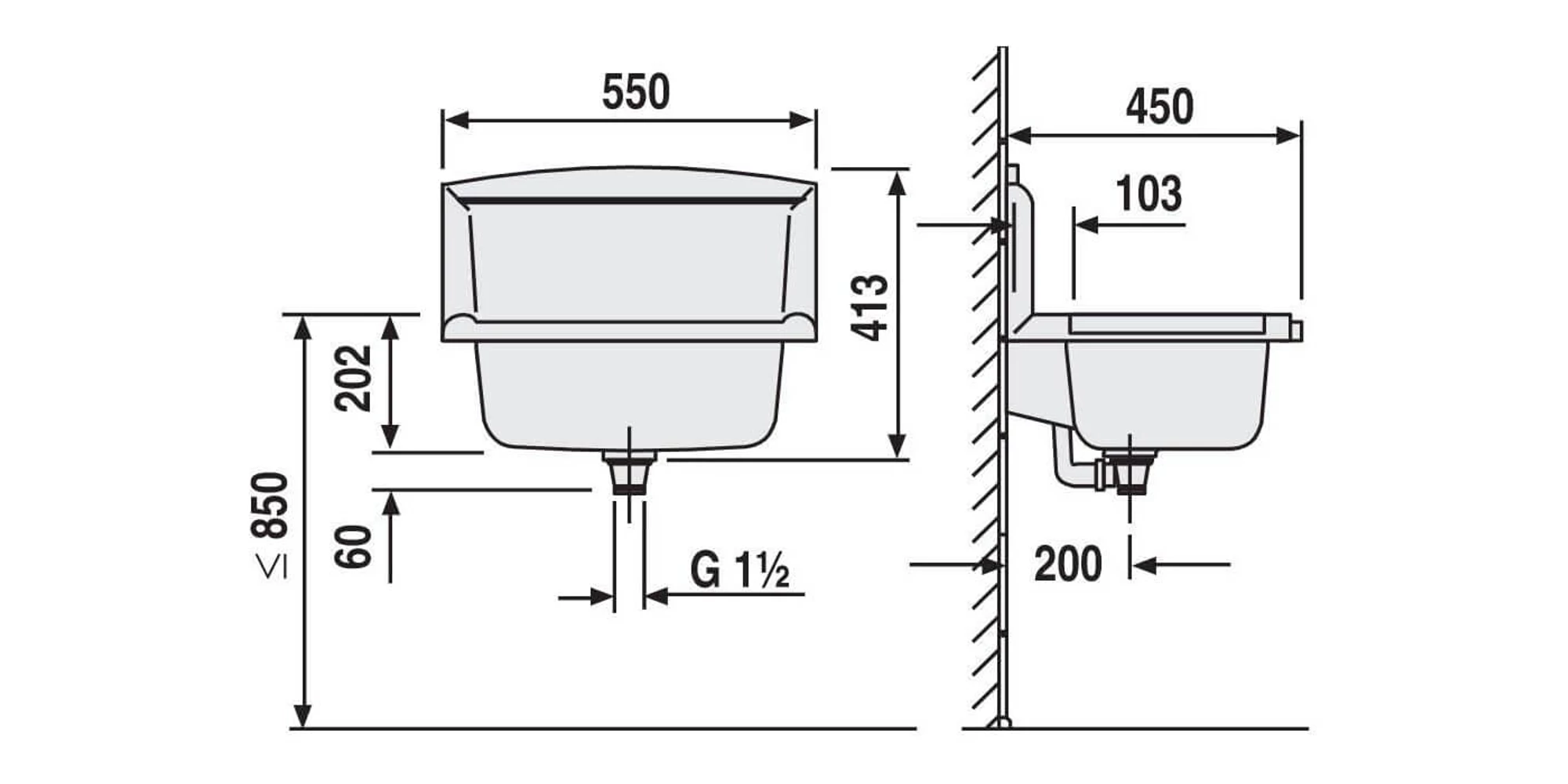 | Accesorii incluse | Prea plin, ventil de golire G1 1/2, filtru, dop cu lanț, kit de montaj cu agățători ascunși |