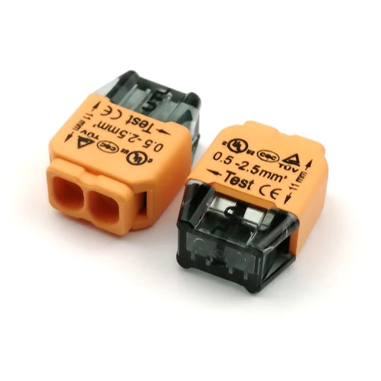Clemă de conexiune cu 2 poli, portocalie, cu conectare rapidă.