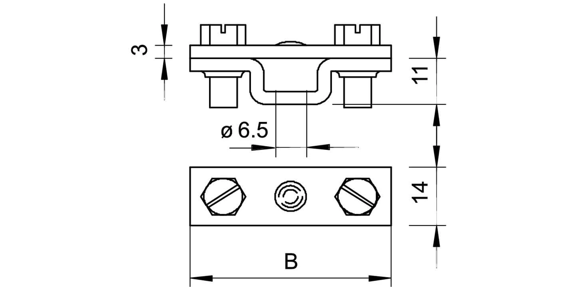Clemă de distanțare pentru platbandă, cu perforație de fixare Ø 6,5, OBO