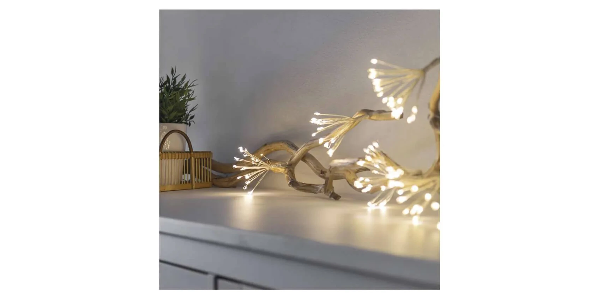 Cluster-urile luminoase cu LED - trunchiuri, nano, 2,35 m, interior, alb cald, timer, D3AW08, EMOS sunt veritabile accesorii „artificii”, ce aduc un plus de eleganță și farmec oricărui decor festiv. Cu un aspect ce amintește de o păpădie în floare, aceste lanțuri sunt ideale pentru aducerea unui element inedit în amenajarea bradului de Crăciun. Firul lor fin și ultra-subțire face ca părțile luminoase să iasă în evidență într-un mod deosebit, oferind un efect vizual deosebit de plăcut.