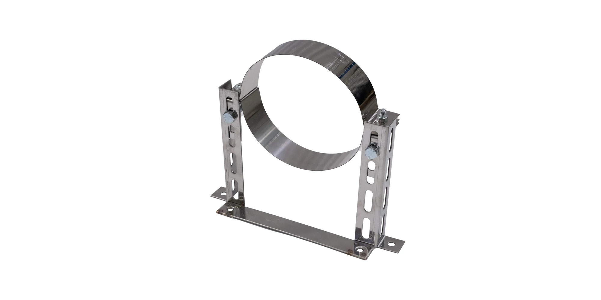 Colierul ranforsat din inox D180 ECO 0.5 mm este un element de fixare a coșului de fum de o suprafață rigidă aflată în apropierea acestuia - peretele casei, stâlpi etc., cu rolul de a stabiliza poziția verticală a coșului de fum. Se utilizează la fiecare 2.5 m înălțime.