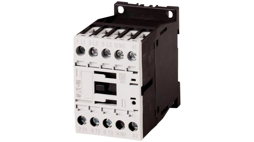 Poziția contactoarelor 12A 5.5kW AC-3 1ND EATON DILM12-10-EA se modifică prin intermediul forței magnetice exercitată de un electromagnet la alimentarea bobinei acestuia cu tensiunea nominală. La dispariția tensiunii de la bornele bobinei contactele revin la poziția inițială. Contactoarele pot fi cu contacte ND si/sau NI.