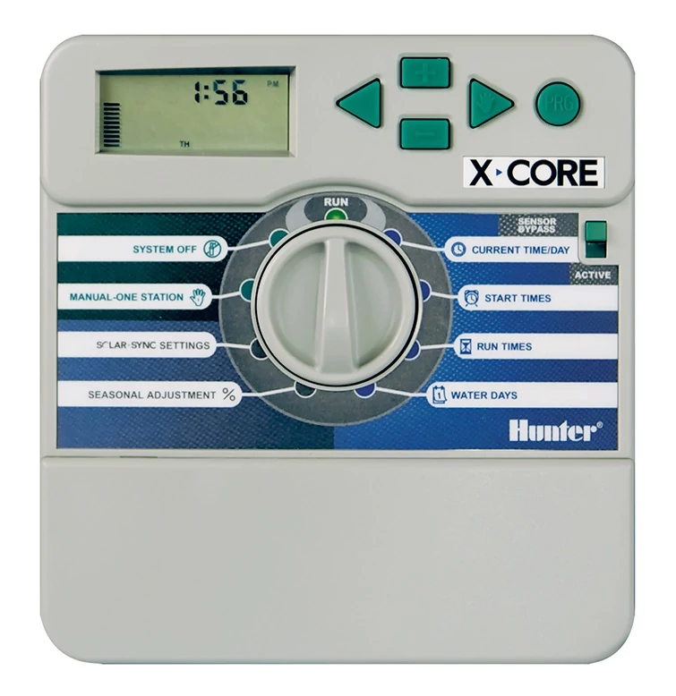 Controlerul exterior X-CORE 6 zone, HUNTER rezidențial la nivel de intrare oferă o operare simplă cu compatibilitate Solar Sync. Are un control ușor de configurat pentru până la 6 stații, inclusiv 3 programe și 4 moduri de pornire pentru fiecare stație, X-CORE este soluția perfectă pentru gazonul dumneavoastră.