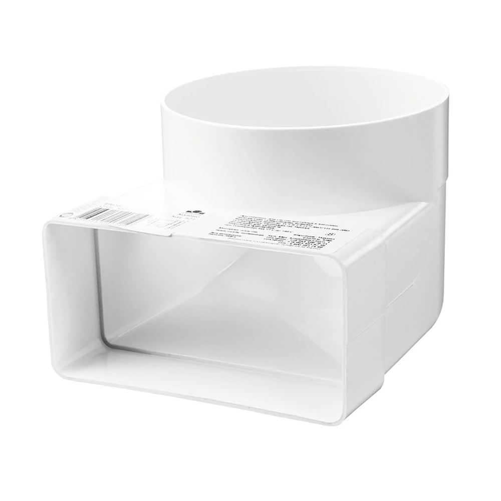 Cot 90 grade conectare tub rotund/rectangular PVC, 110 x 55 mm, diametru 100, pentru tubulatură ventilație, 521, VENTS