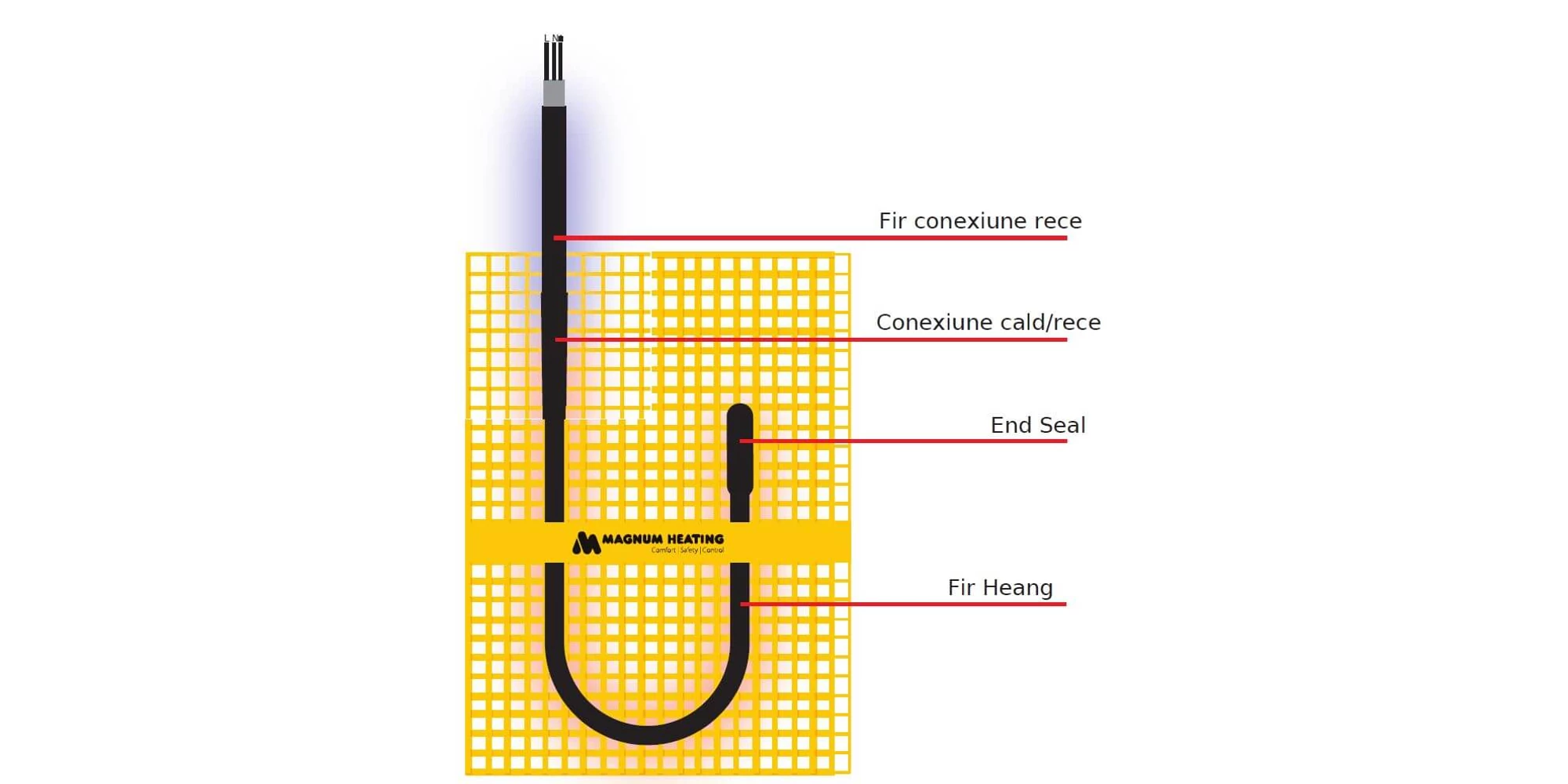 - Conexiune unică cu auto-aliniere între cablul de încălzire și cablul de conexiune.