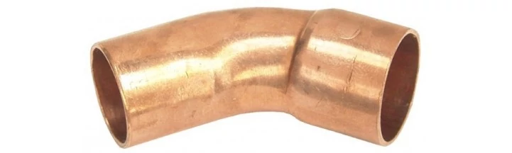 Curbă cupru 15 mm, 45 °, pentru îmbinare prin sudură, interior-exterior.