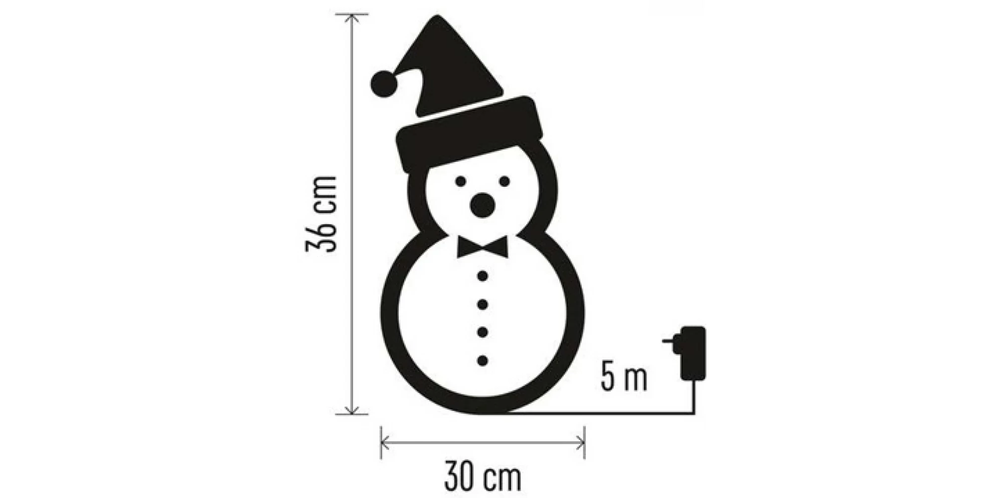 Cu o înălțime de 36 cm și o lungime de 30 cm, decorațiunea cu LED-uri se impune cu prezența sa în orice decor de Crăciun. Omul de zăpadă adorabil și detaliile fine fac din această decorațiune un punct focal atrăgător în curtea sau grădina ta.