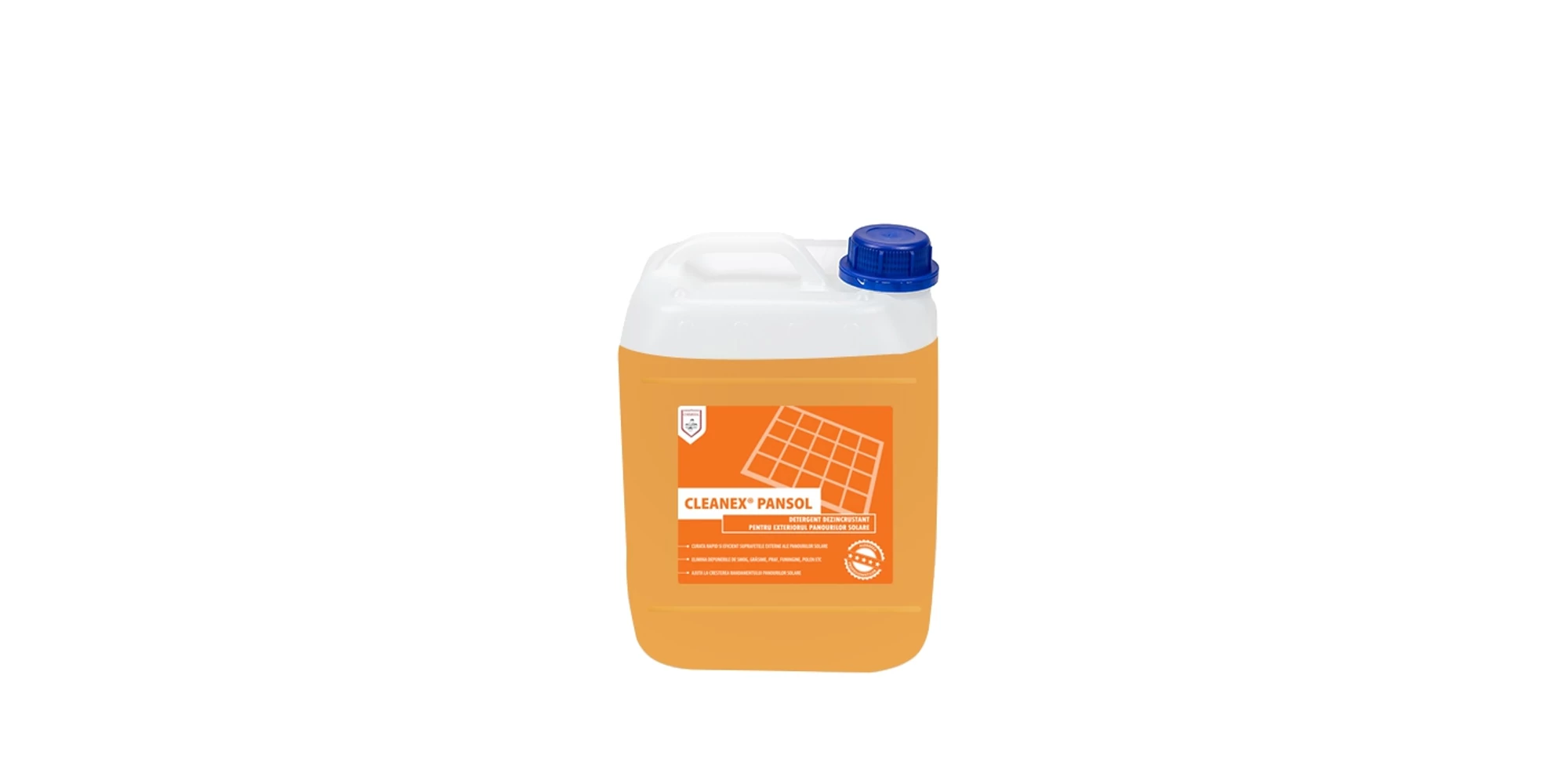 Detergent dezincrustant, exterior, pentru panouri solare, 5 kg, CLEANEX PANSOL este o soluție concentrată profesională pentru curățarea suprafețelor externe active ale panourilor solare plane sau cu tuburi precum și cele fotovoltaice. Are efect antistatic.