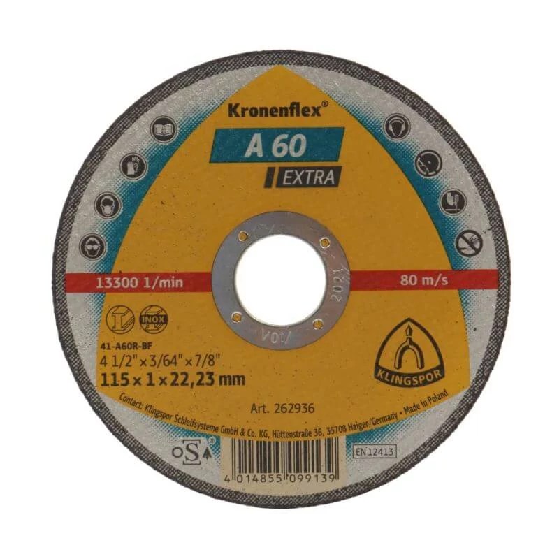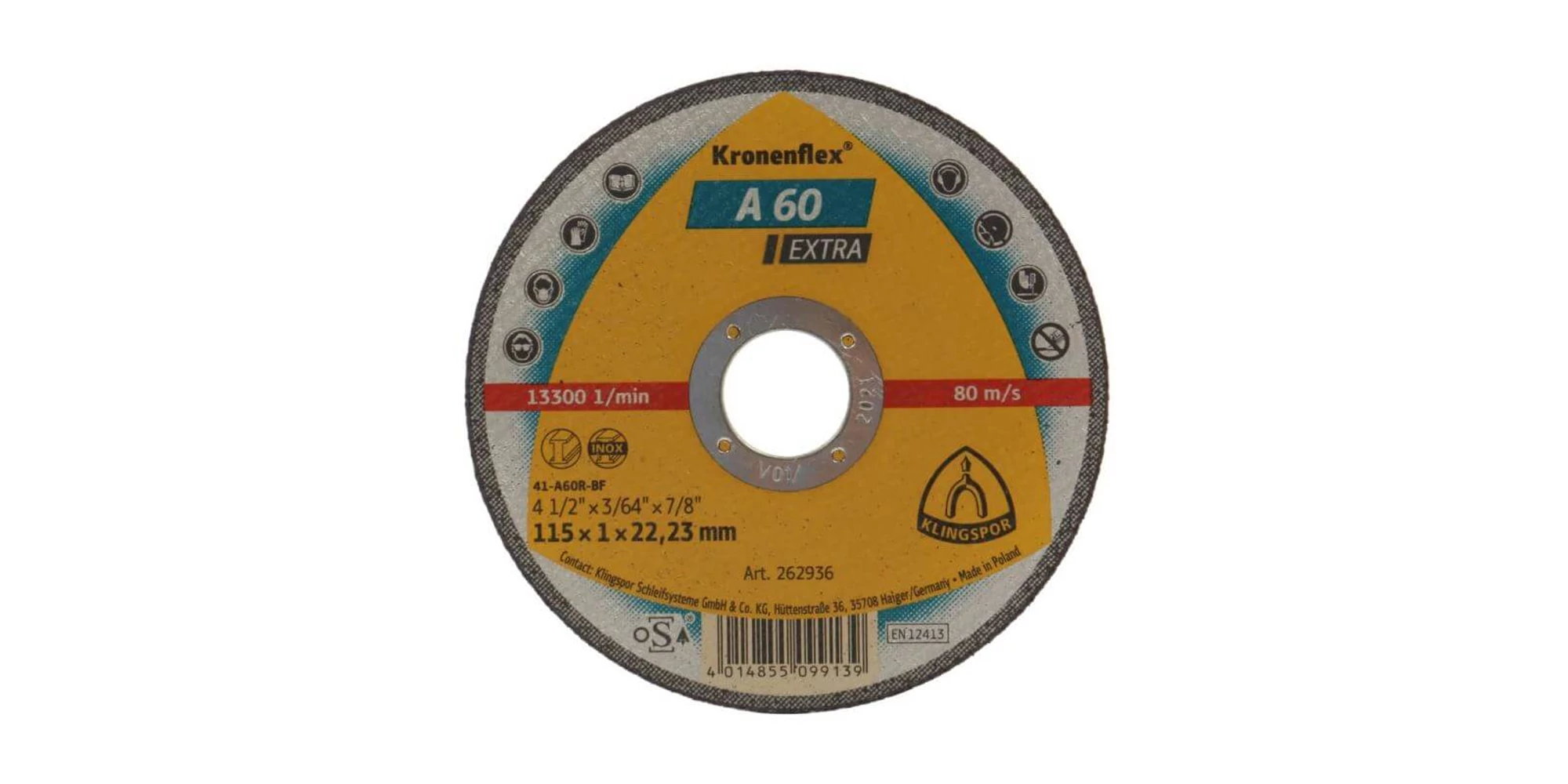 Disc debitare 115 x 1 x 22,23 mm, Kronenflex® A 60 Extra, Klingspor | 10510228 | 4,16 Lei | Consumabile pentru debitare | Confort prin instalații de calitate | Melinda InstalSpecificații tehnice