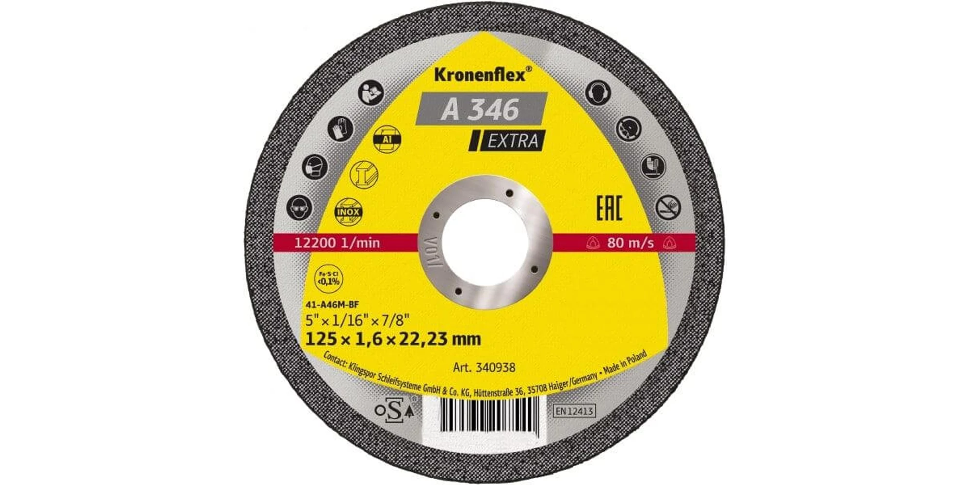 Disc debitare 125 x 1.6 x 22,23 mm, Kronenflex® A 346 Extra, Klingspor | 10510722 | 5,38 Lei | Consumabile pentru debitare | Confort prin instalații de calitate | Melinda InstalSpecificații tehnice