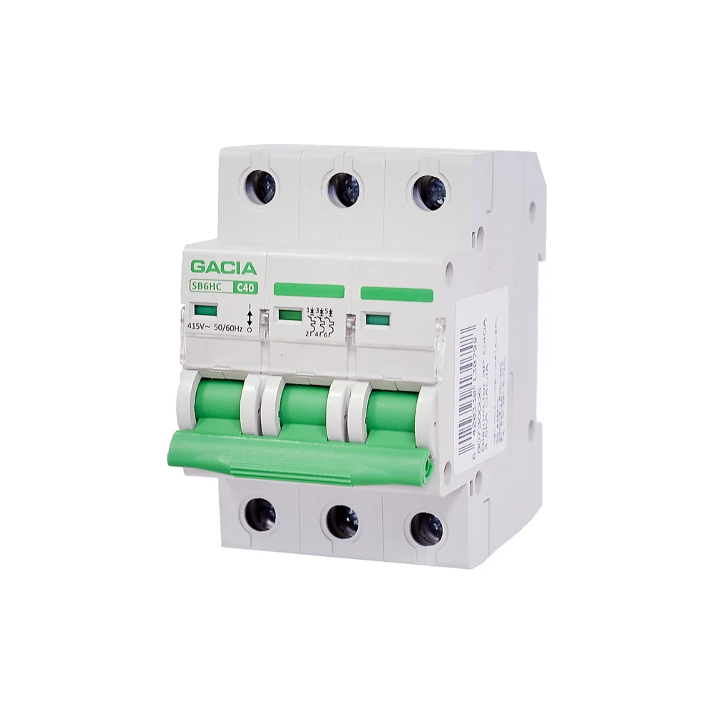 Disjunctor 3P C40A 4.5kA GACIA cu curent nominal 40A cu caracteristica de declanșare tip C, capacitate de rupere 4.5 kA. Sunt utilizate ca întreruptoare electrice de regim automat de funcționare, care au rol de protecție a circuitelor electrice la suprasarcină și scurtcircuit.