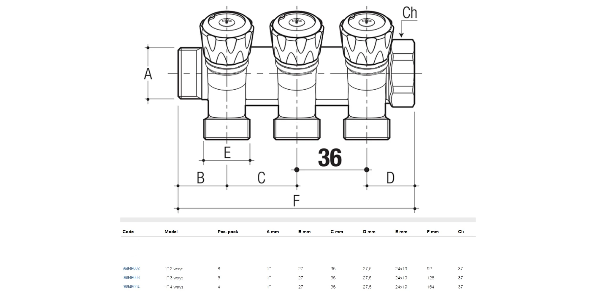 Distribuitor sanitar modular 1" 3 cai 24x19 FIV