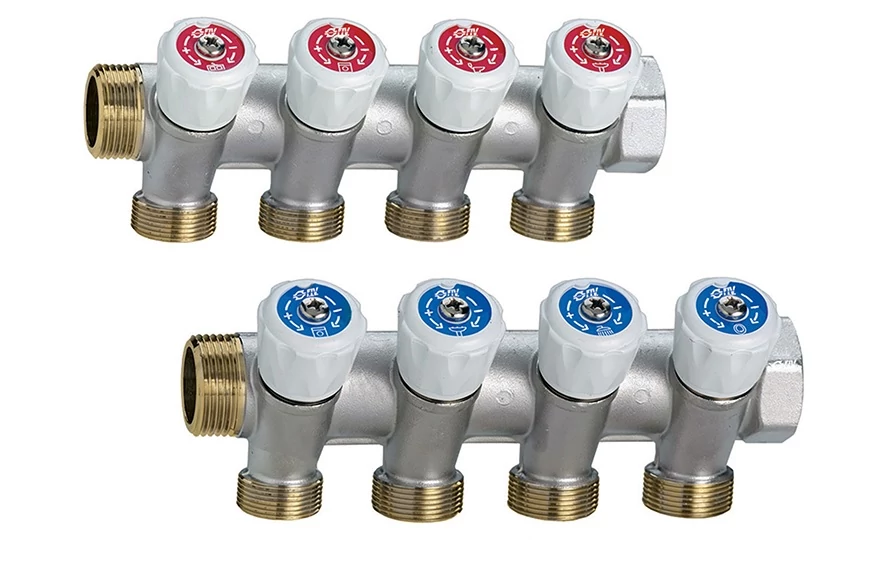 Distribuitor sanitar modular 1'' din alamă, cu robinete de izolare, asamblabile împreună cu o piesă de legătură, realizată din alamă presată, pentru sistemele de apă caldă menajeră, acoperite cu nichel, pentru conducte de cupru, multistrat, PEX, PP și PB. Manere echipate cu autocolante roșii și albastre. Conditii de functionare: temperatura maxima de functionare: 100 ° C. Presiune maximă de lucru: 10 bar. Distribuitor sanitar modular 1" 3 cai 24x19 FIV | 10810185 | 103,71 Lei | Distribuitoare sanitare | Confort prin instalații de calitate | Melinda Instal