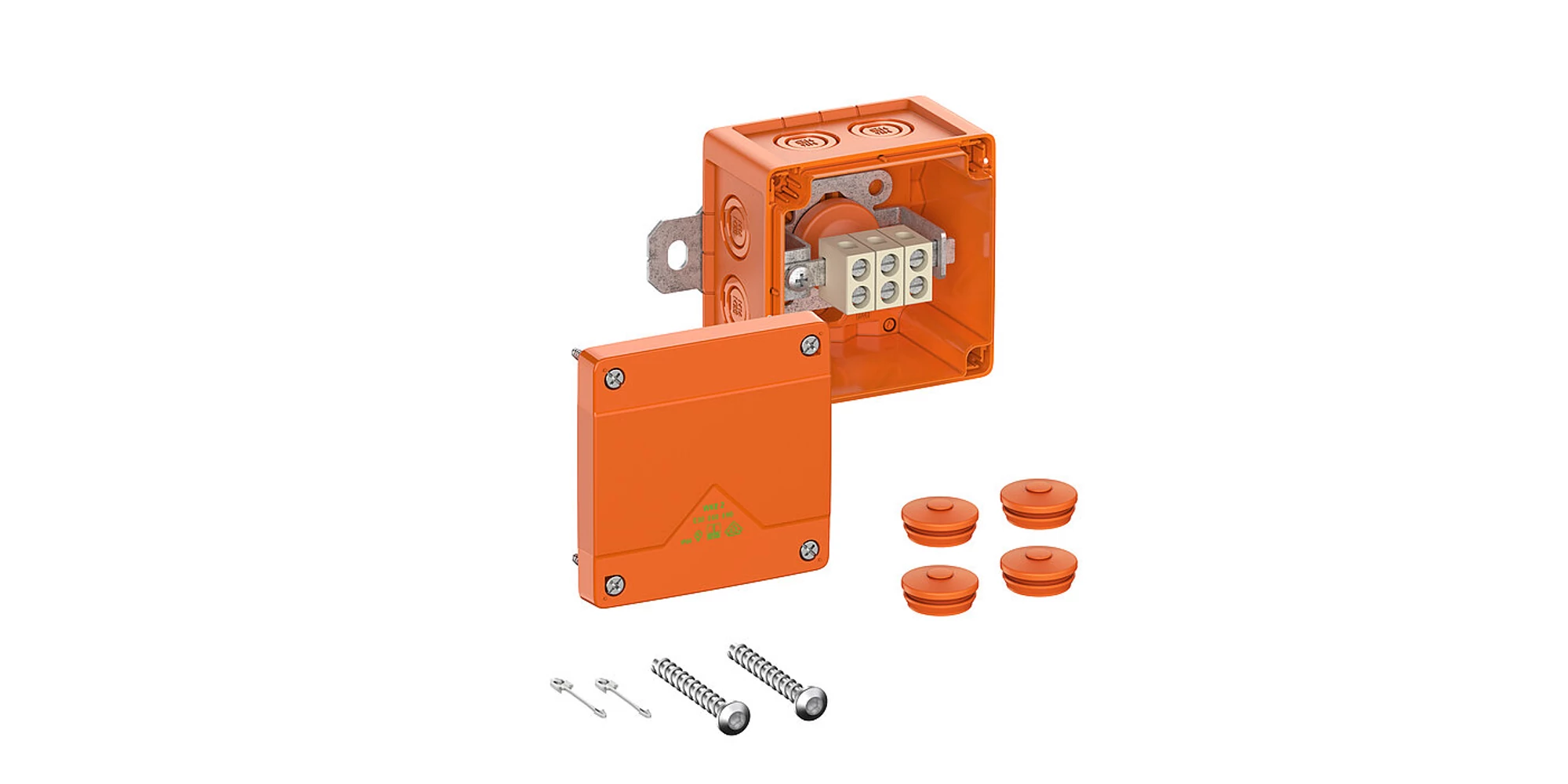 Carcasa acestei cutii de conexiuni este realizată dintr-un material special fără halogeni, folosind borne speciale duroplastice. Aceste componente sunt fabricate din ceramică specială la temperaturi înalte, asigurând o durabilitate ridicată și rezistență la factori externi duri. Montarea rapidă este facilitată de consolele externe de fixare și kitul de fixare pentru perete și plafon D6, oferind astfel o soluție convenabilă pentru instalare.