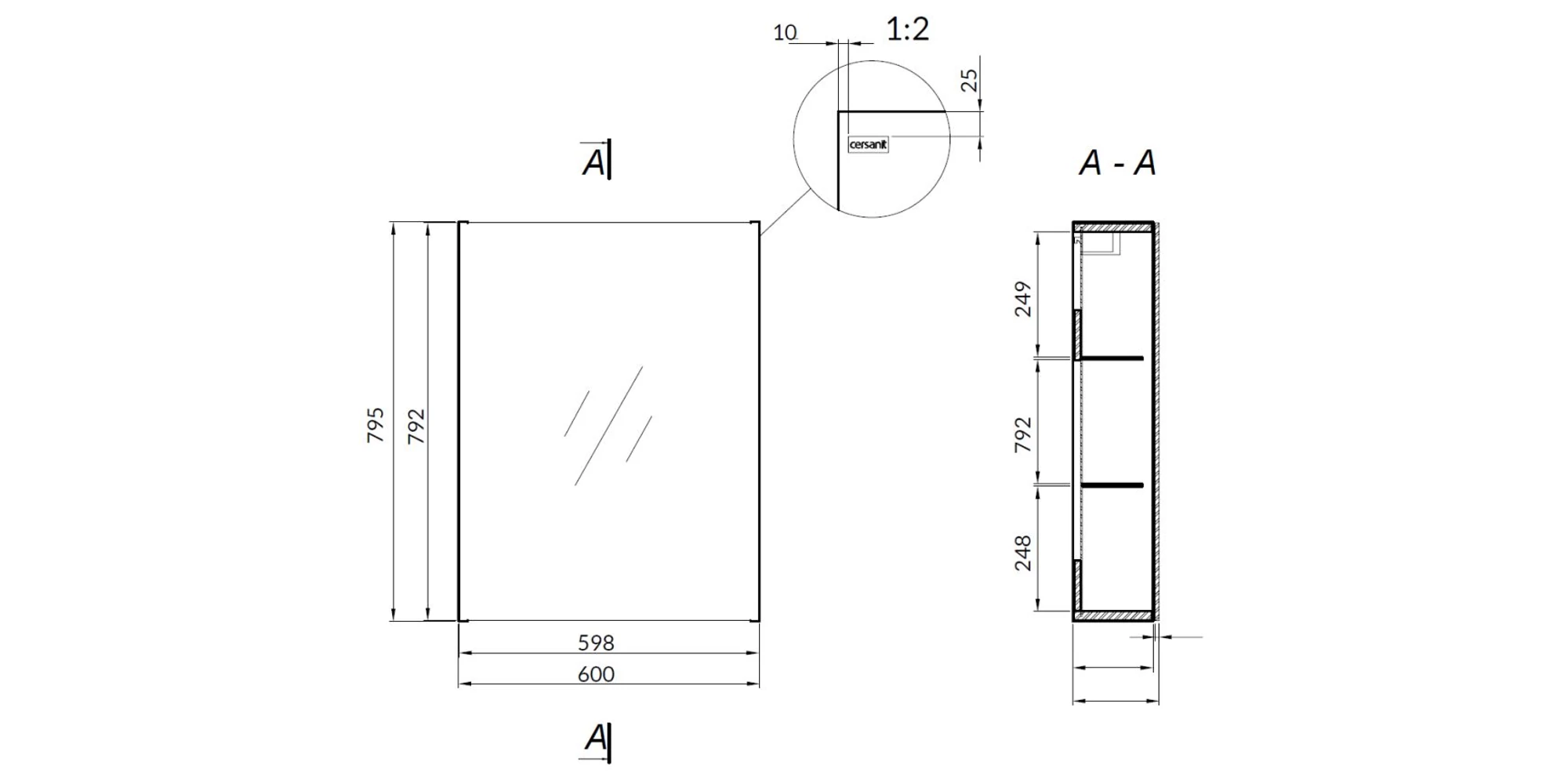 Dulap cu oglinda, Inverto 60 CERSANIT S930-011 | 20530651 | 1.449,00 Lei | Dulap | Confort prin instalații de calitate | Melinda InstalSpecificații tehnice