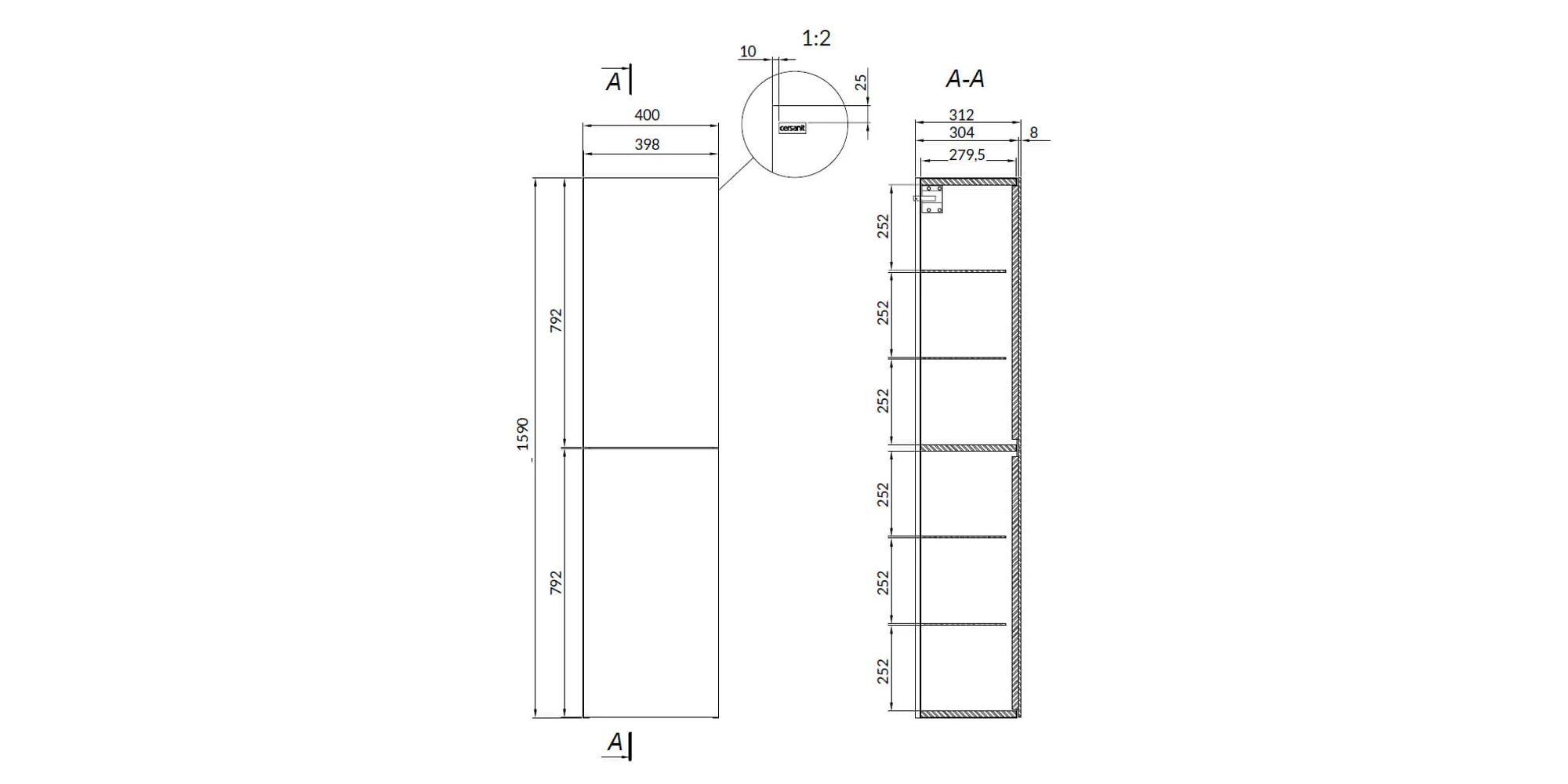 Dulap suspendat tip coloana, Inverto Calacatta CERSANIT 40 S930-008 | 20530650 | 2.979,00 Lei | Dulap | Confort prin instalații de calitate | Melinda InstalSpecificații tehnice